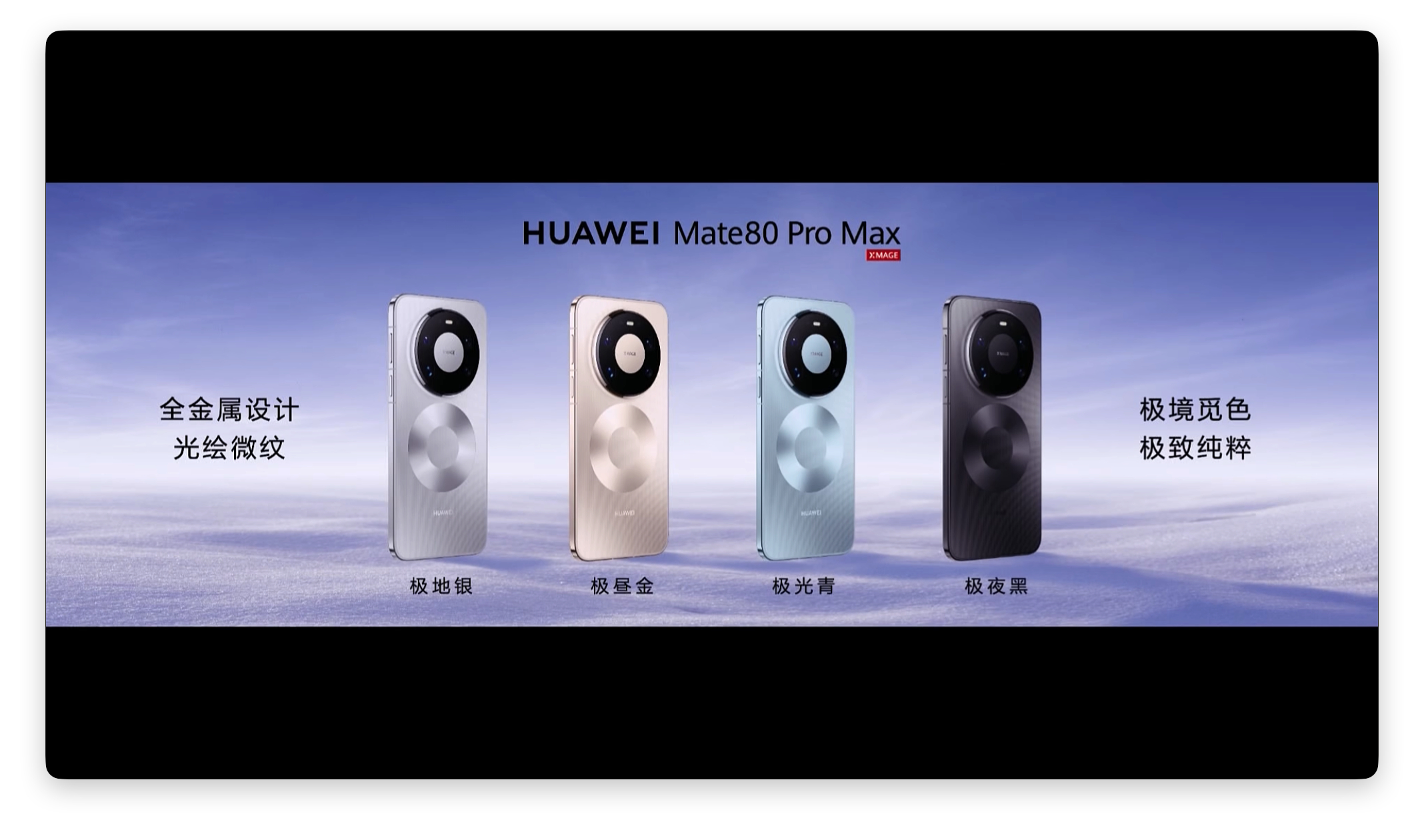华为Mate80 来了,采用了双环设计,中轴对称设计,Mate80 Pro Max整机采用全金属机身,质感真的很强啊,而且细节也真的很到位,机身还有MATE的光绘微纹。全系支持6米的IP68、IP69,这次拥有Mate80、Mate80 Pro、Mate80 Pro Max三个版本,全系搭载2.5D直屏、全系搭载3D ToF。