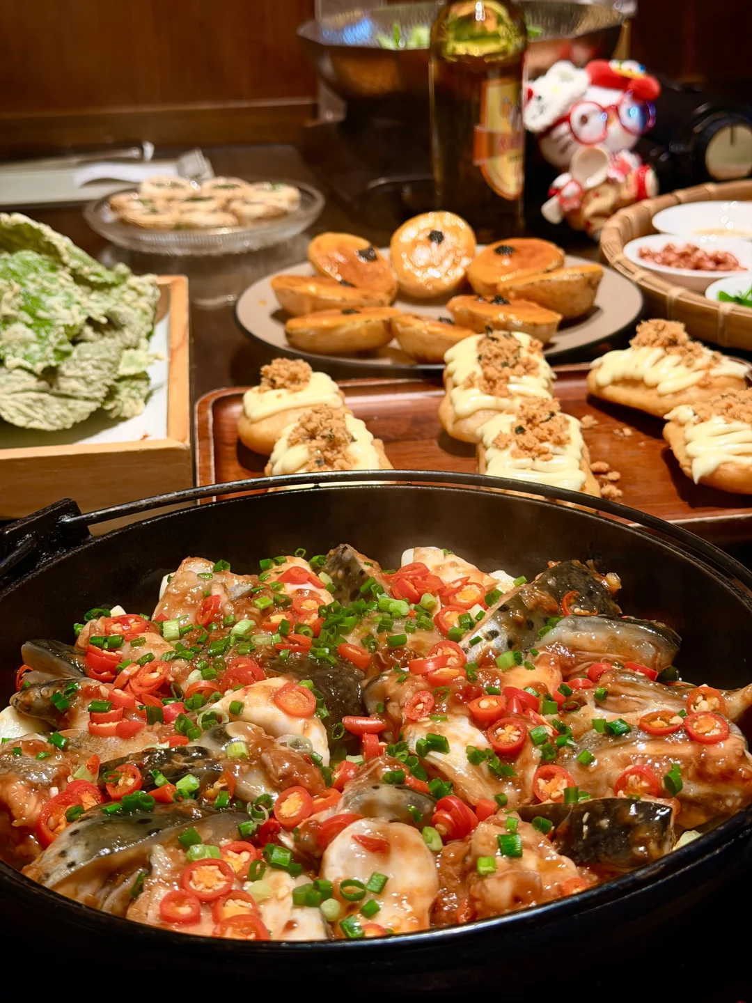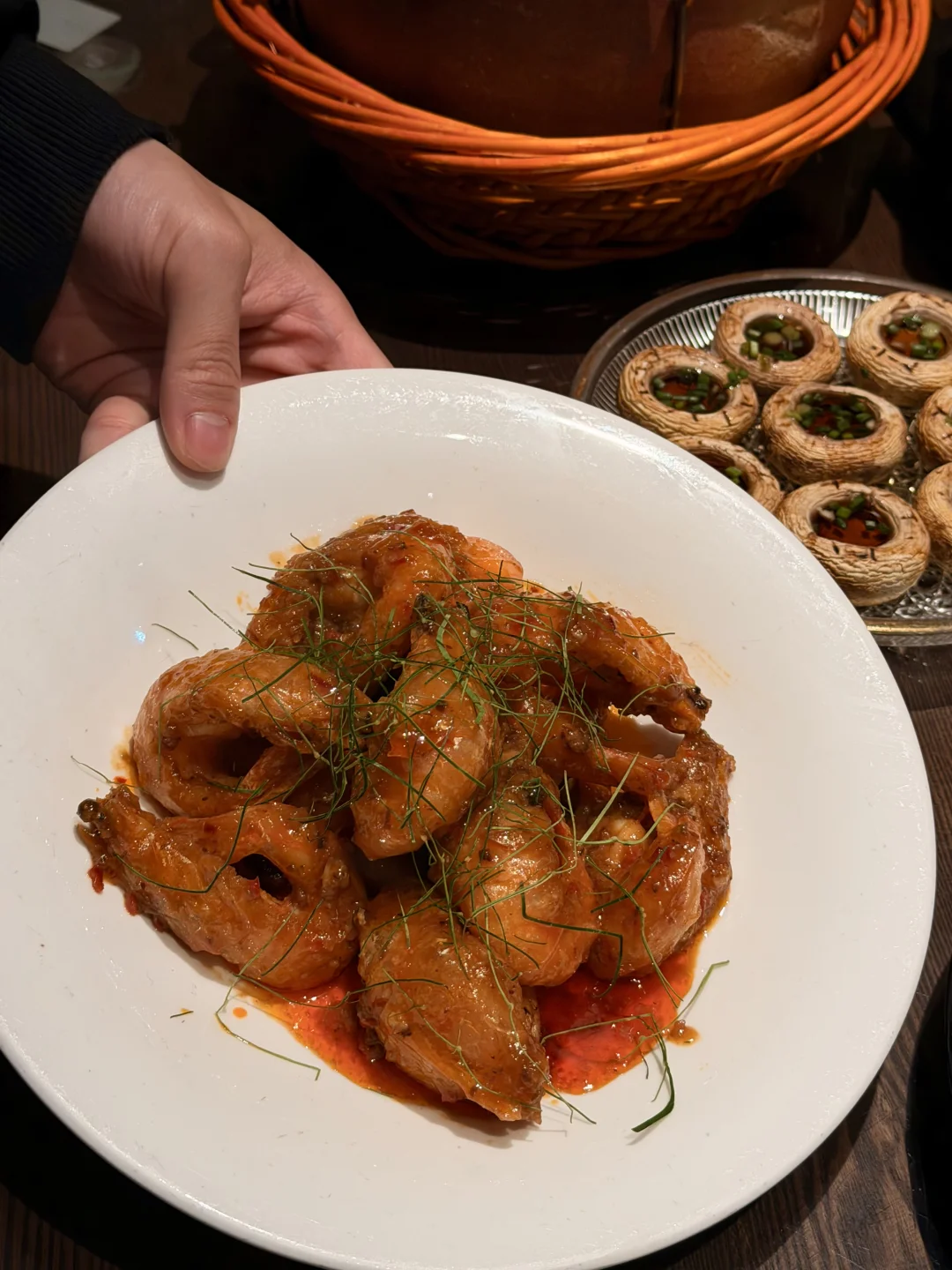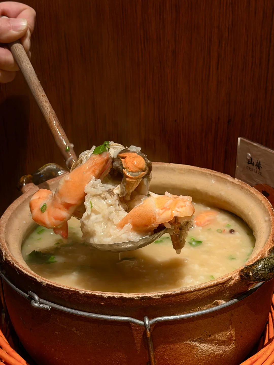 入冬仪式感 带家人来山椿喝上一锅热腾腾的大闸蟹鲜虾干贝粥🦀从头暖到脚 🌟风生水起黑松露捞鸡 青柠和小米辣的融合 酸酸辣辣 鸡肉鲜嫩多汁超入味 ☺️ 新鲜的烤口蘑 和招牌鱼子酱高原土豆都很好吃 🌟菌皇酱蒸板筋肉 底下还有嫩嫩的笋片 板筋肉口感QQ弹弹 天气渐冷 带家人一起来吃热腾腾的海鲜砂锅粥真的幸福感满满❗