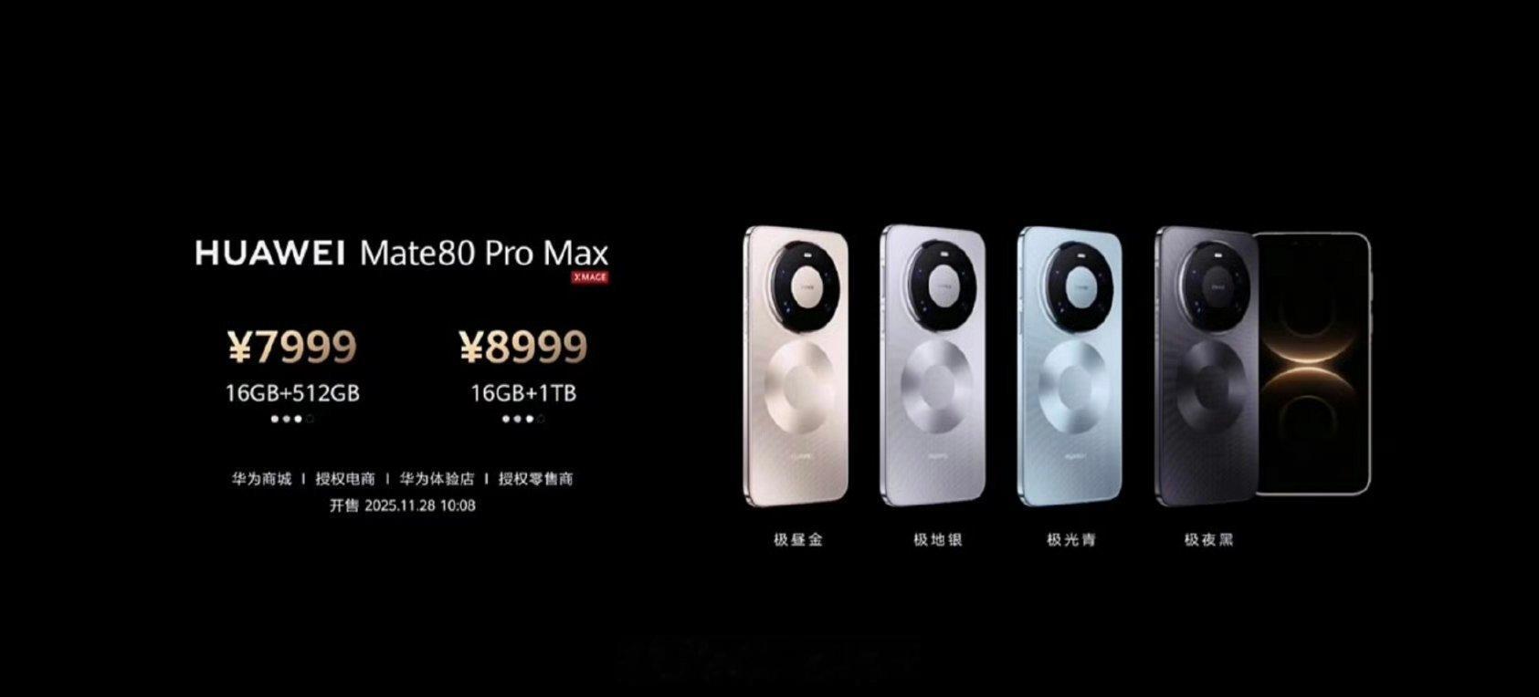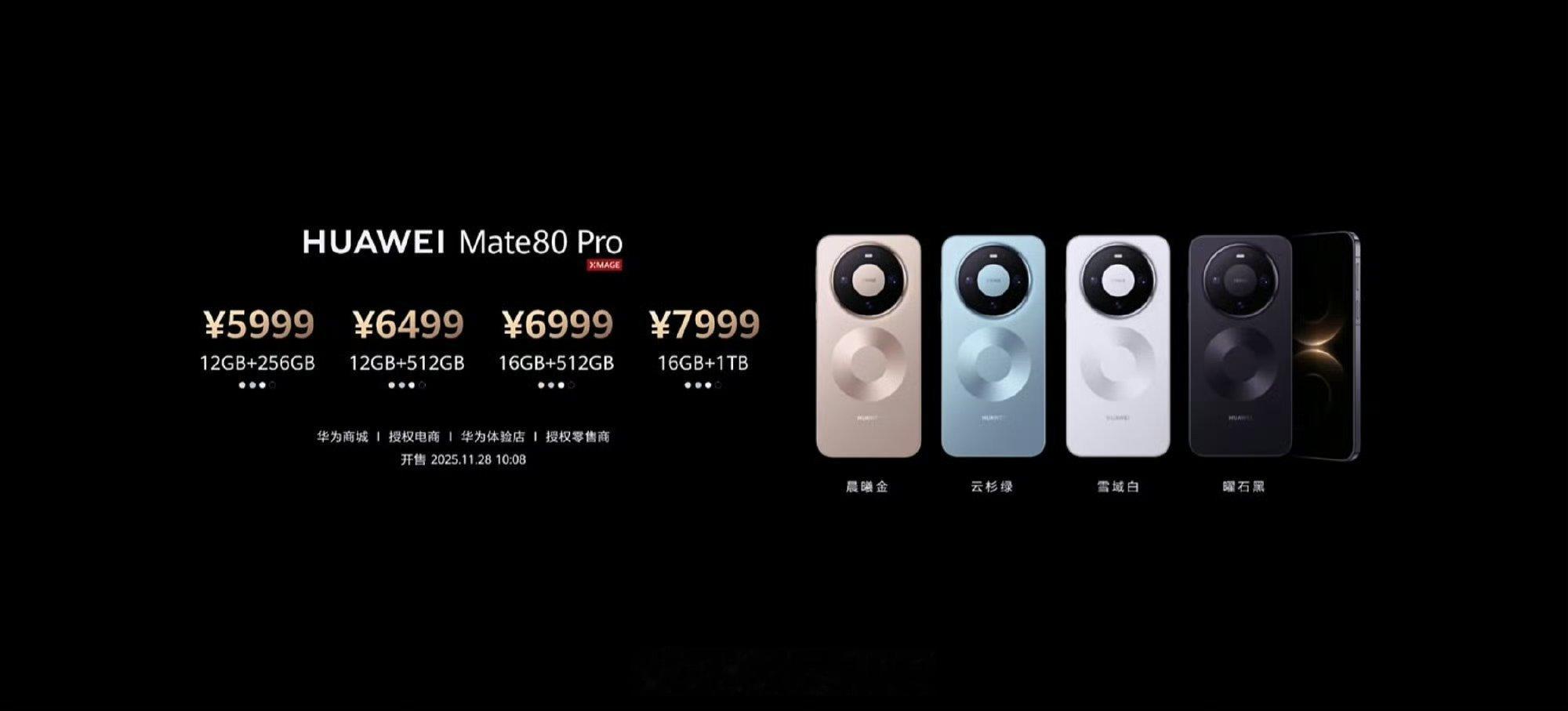 华为Mate80全系价表整理,按需冲不踩坑:- Mate80:12+256G 4699元、12+512G 5199元、16+512G 5499元,性价比旗舰首选- Mate80 Pro:12+256G 5999元、12+512G 6499元、16+512G 6999元、16+1TB 7999元,全能无短板真香款- Mate80 Pro Max:16+512G 7999元、16+1TB 8999元,极致影像+性能拉满- Mate80 RS非凡大师:20+512G 11999元、20+1TB 12999元,20G超大内存+奢华质感,高端专属