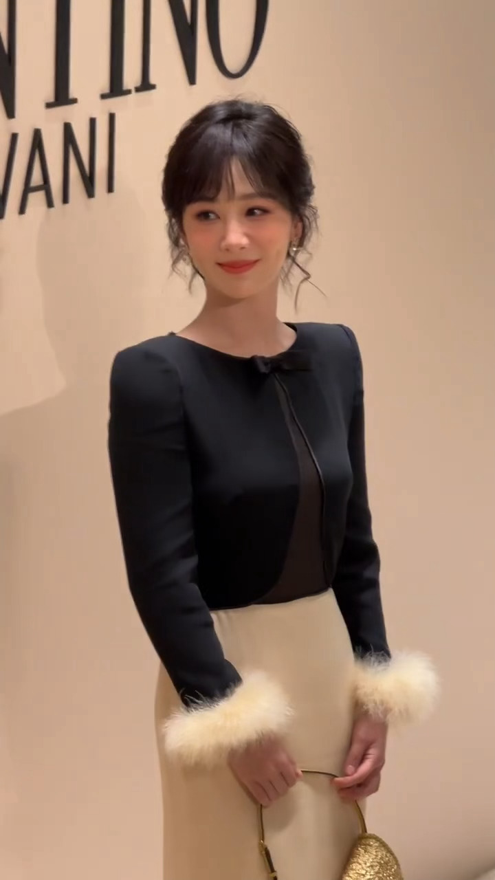 刘亦菲把死亡玫粉穿出了定制款的感觉,这种颜色普通人穿上分分钟黑三度,她居然能穿出