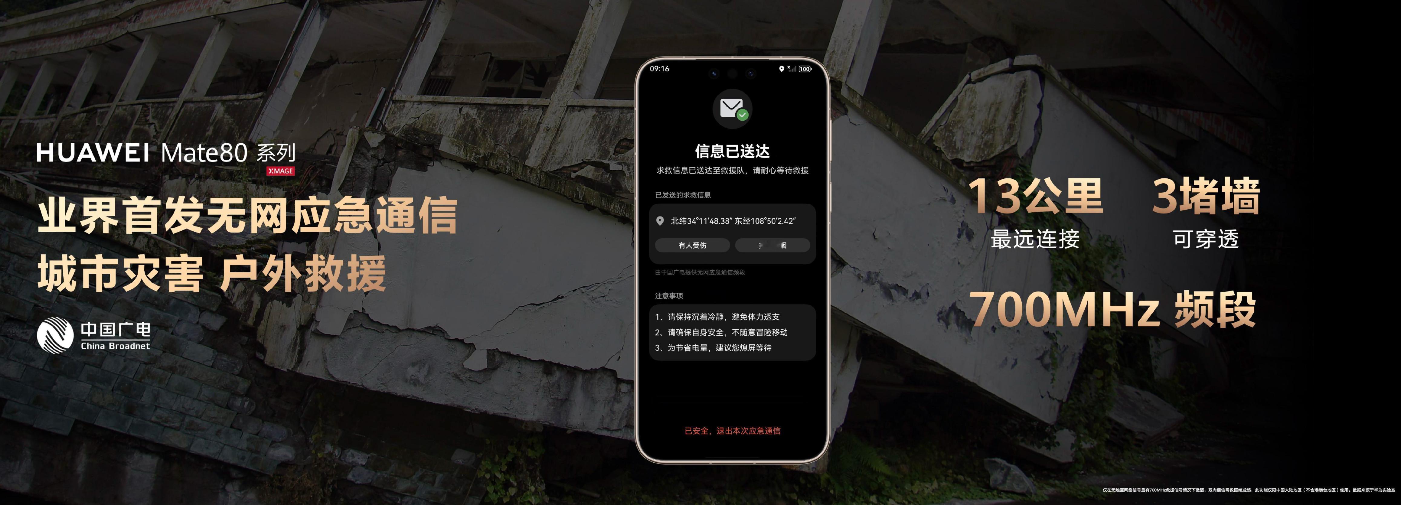 地网天网乃至无网,Mate80系列首发700MHz无网应急通信。通信这一块,阿华还是那四个字。700MHz应急频段救援信号,可以穿透3层楼的深度,覆盖能超过13公里的距离,这对于一些应急场景,就非常有作用了。有备无患!