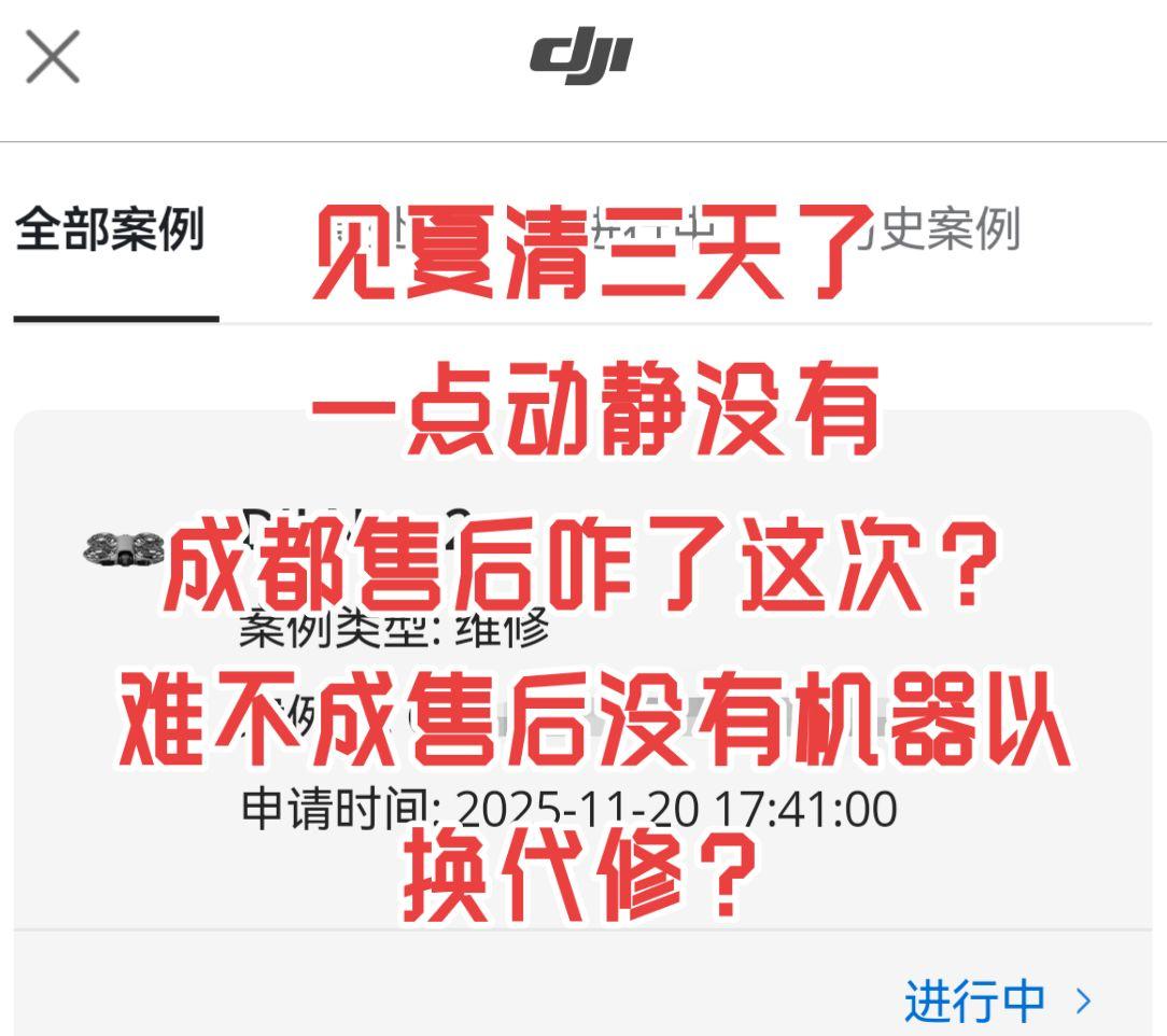 三天了成都售后一点动静都没有,以前大疆售部处理都十分迅速,这一次都慢的要命,难道是新机器没有以换代修的机器给用户?早知道不邮寄去成都售后那边了😭😭😭😭我服了 大疆Neo2