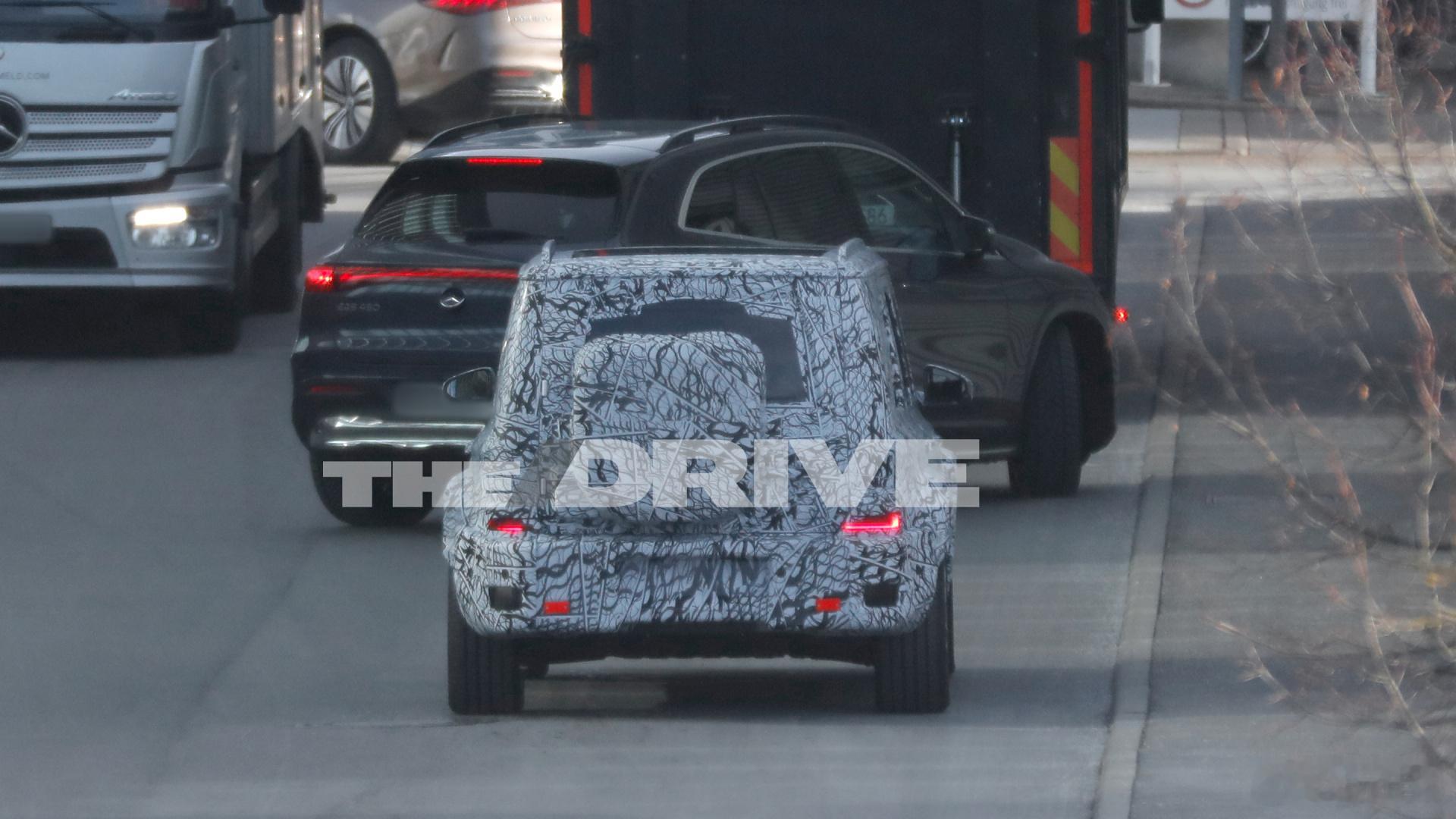 小号的G-Class EV,对比谍照中出现的奔驰EQS SUV和Metris厢式车不难发现它实际上有多小这好像也能印证之前“跟CLA/GLA共享平台”的传言。车顶的全尺寸行李架也比较显眼。合起来看,它将来的主要对手应该类似国内市场最近出的那些紧凑级方盒子吧