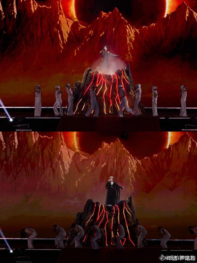 严浩翔站在火山上这个舞台的设计真的是非常的炫酷的!完全是山顶上的男人了,太喜欢这