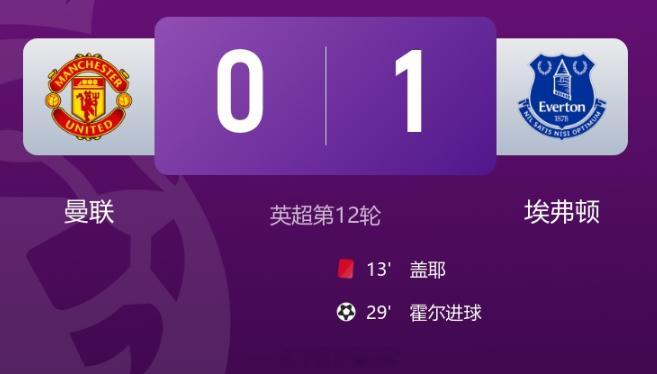 英超第 12 轮老特拉福德球场,上演了一场充满戏剧性的冷门对决 —— 曼联主场 0-1 不敌少打一人的埃弗顿,遭遇联赛 3 轮不胜,积分榜位置持续下滑。比赛上半场便掀起波澜:埃弗顿队内突发内讧,球员盖耶情绪失控掌掴队友,裁判当即出示直红将其罚下,埃弗顿被迫以十人应战。然而少打一人的局面并未让埃弗顿陷入被动,反而抓住机会率先破局,霍尔进球帮助球队客场取得 1-0 领先,将曼联逼入绝境。易边再战,曼联急于扳平比分,掌控了场上大部分进攻节奏,但始终无法敲开埃弗顿的大门。核心球员 B 费面对关键得分机会未能把握,错失扳平良机;而埃弗顿门将皮克福德则状态神勇,多次上演精彩扑救,将曼联的进攻一一化解,牢牢守住领先优势。最终全场比赛结束,曼联 0-1 不敌埃弗顿。积分榜上,曼联 3 轮不胜仅积 18 分,跌至第十位;埃弗顿则凭借这场宝贵的客场胜利,同积 18 分暂列积分榜上游区域,为球队后续保级与冲击更好排名注入信心。这场比赛不仅是曼联的又一场失利,更暴露了球队进攻端效率不足的问题,亟待调整。