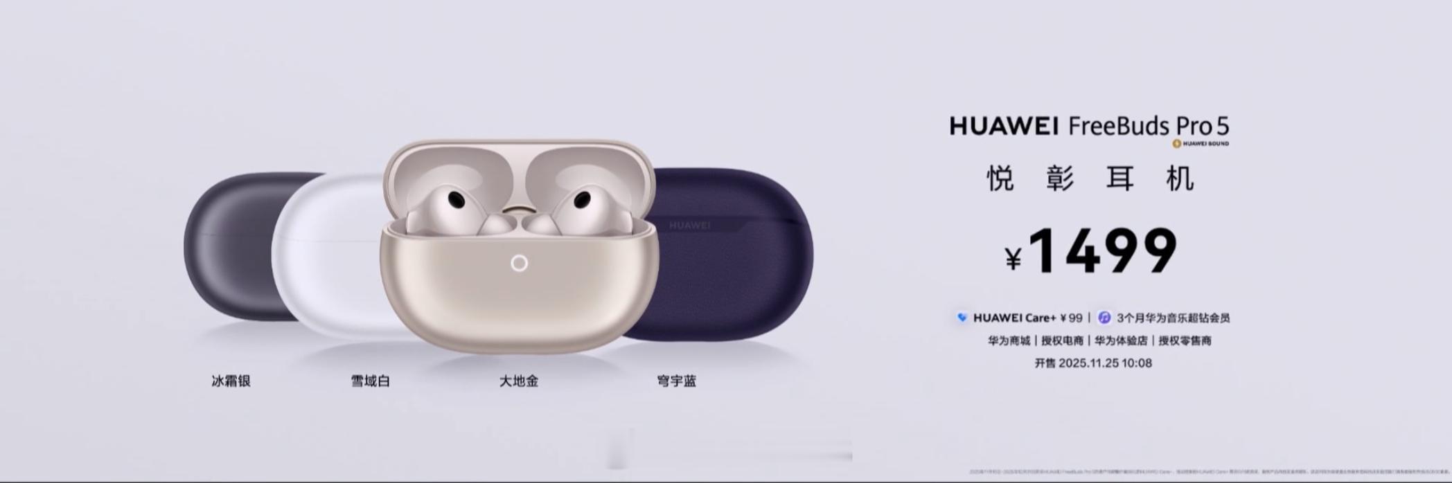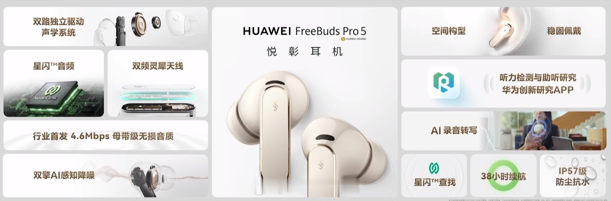 华为FreeBudsPro5悦彰耳机发布,售价1499元。支持星闪音