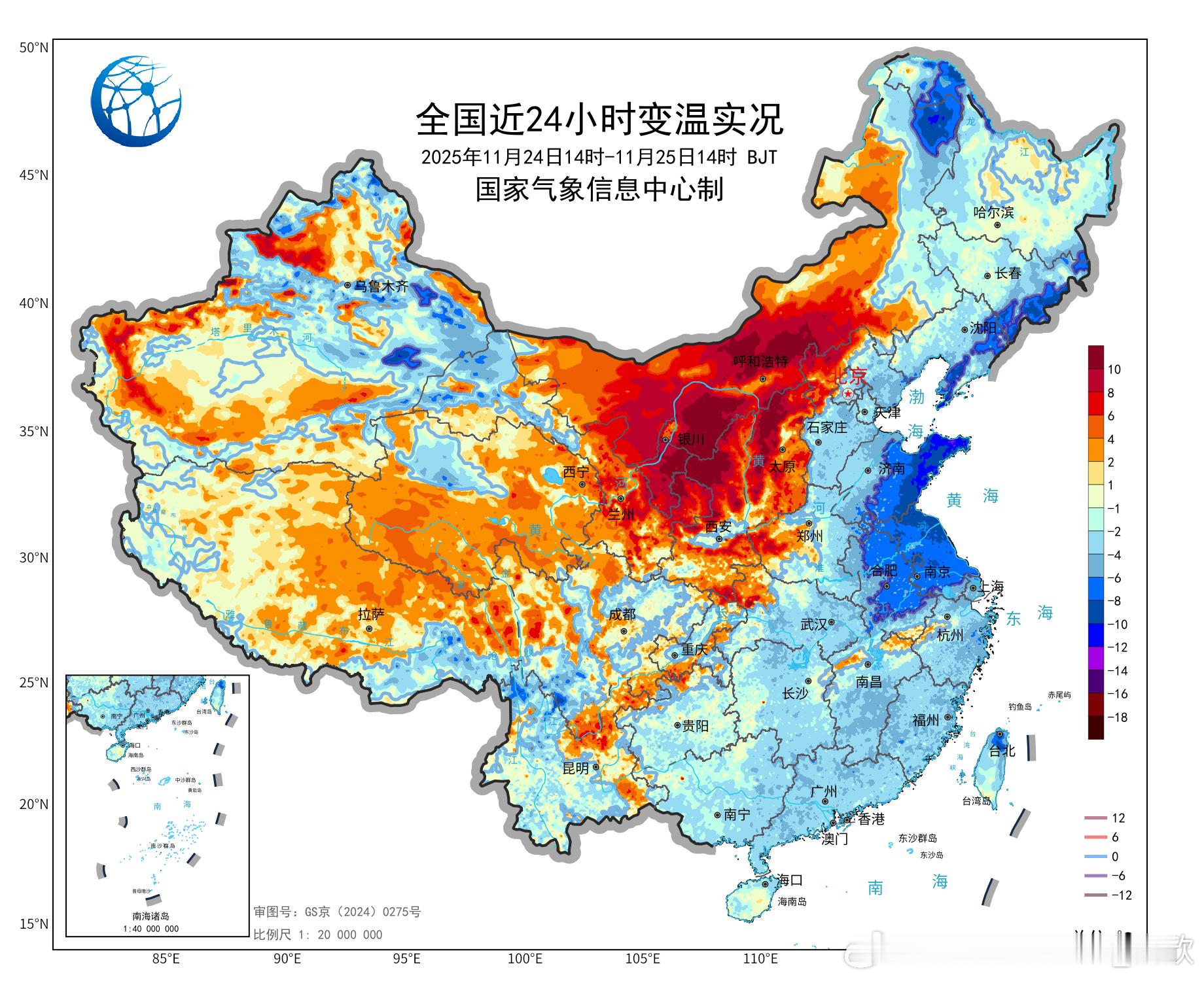 【夹心状升降温】今天我国的气温起伏依然不小,东北到江南多地,以及新疆等地,受到东