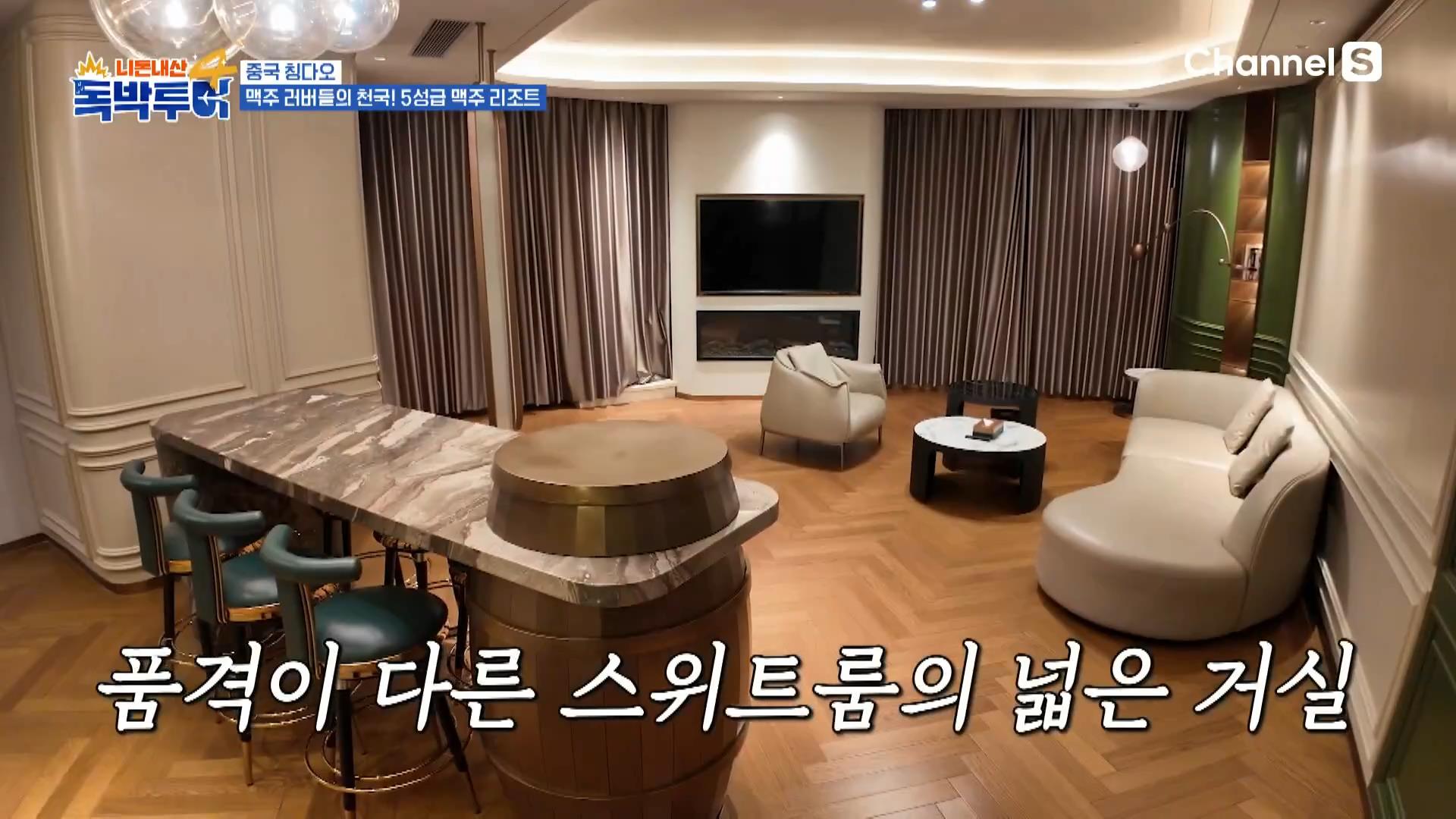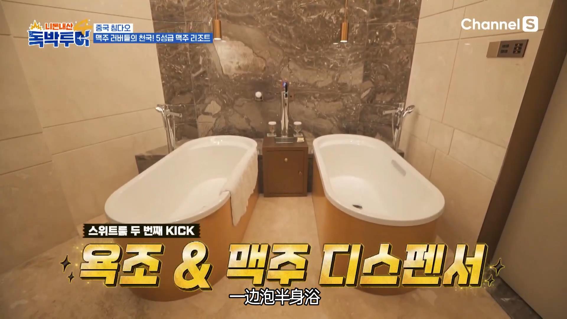 韩国明星到青岛旅游,住一晚75万的酒店,惊得嘴都合不上! 韩国明星在青岛录制节目,听说青岛有一家酒店房间里居然有啤酒水龙头,于是便在那家酒店订了一个标准间和一个套房,两间房的房费一晚上一共需要75万韩元。 听到这个价格,韩国明星都有点惊讶。不过他们到了房间后,就觉得这个钱花的值了。 套房的客厅里就有啤酒水龙头,想喝啤酒,自己接就行。 卫生间里有两个浴盆,中间居然还有一个啤酒水龙头,一边泡着澡,一边喝着鲜啤,真是太舒服了。 更美的是房间外的景色,这个酒店就建在海边,早上起床,可以看到大海。 吹着海风,喝着小啤酒,那感觉,光想一下就美! 要不说有钱人先享受世界,这样的酒店,一般人还真不舍得住。可真住上了,也是真舒服。希望大家有机会都能感受一下吧。