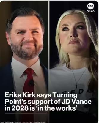 已故保守派评论家Charlie Kirk创办的“美国转折点”组织正在悄悄支持副总统JD Vance竞选2028年总统。该组织负责人艾丽卡 Erika Kirk表示,此事“正在筹备中”,这仅仅是大规模行动的开始。 越看越觉得这一对太般配了。祝早日锁死,请加油[吐彩虹]