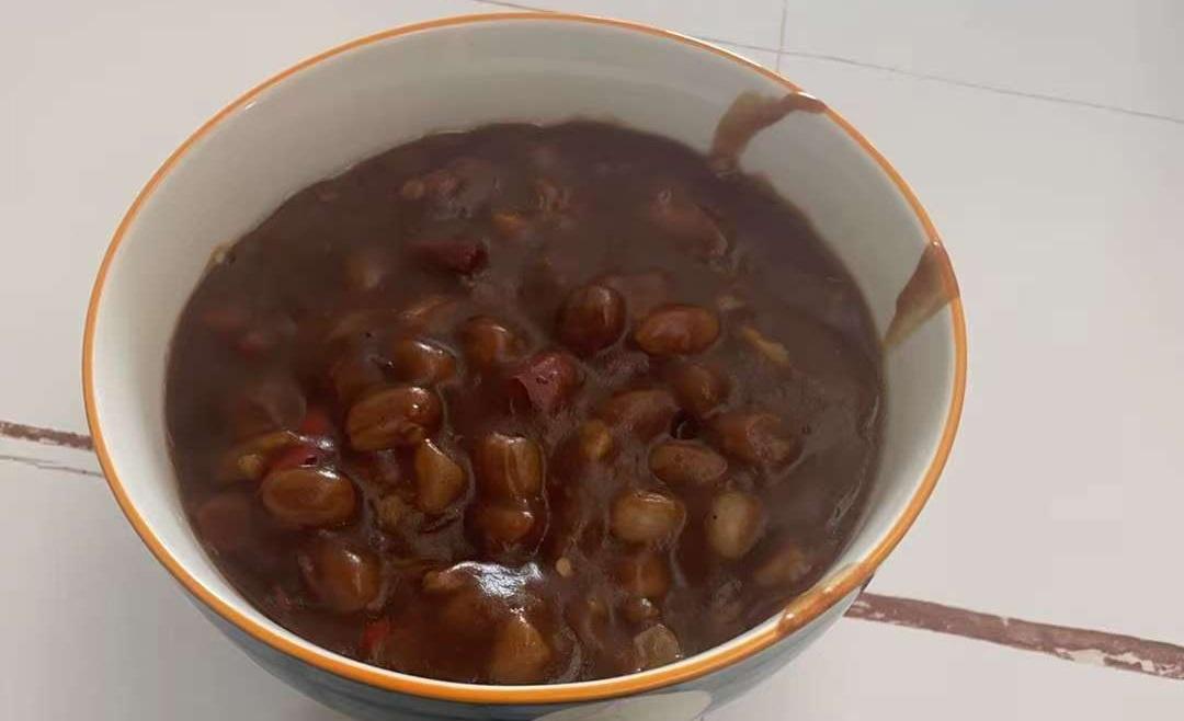 南通人对“泡饭”的执念,冬天把剩饭加水烧开,就是一碗“烫饭粥”,讲究点的可以放几块蕃芋(红薯),如皋可能会加玉米渣,或者粯子粥。冬天搭配粥,最好就是炒酱,启海地区叫“斑椒酱”。传统南通炒酱是甜面酱+茶干丁+肉丁+花生米,有些可能会加炸小河虾,熬到浓稠,下粥一绝。