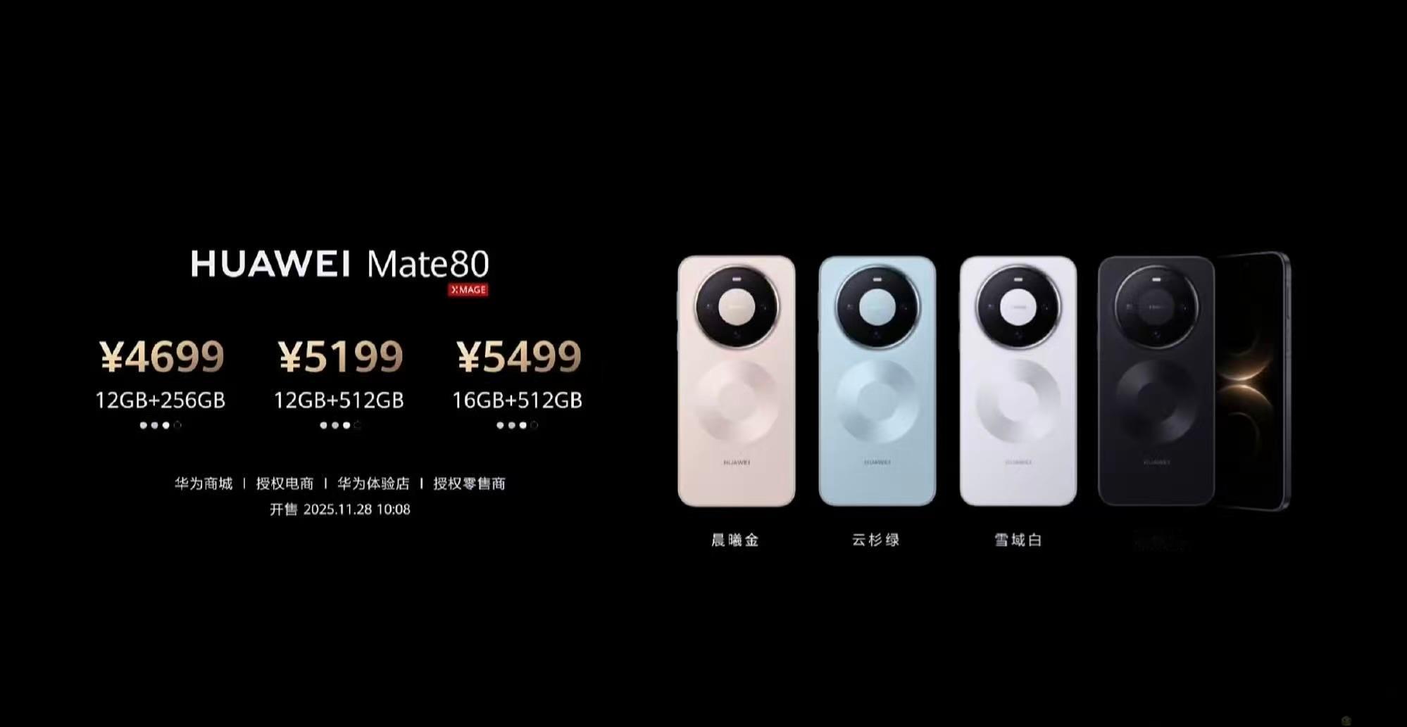 华为Mate80系列价格来咯,4699元起~Mate80 4699 起Mate80 Pro 5999 起Mate80 Pro Max 7999 起Mate80 RS 非凡大师 11999 起小西觉得这个价格还是挺香的啊