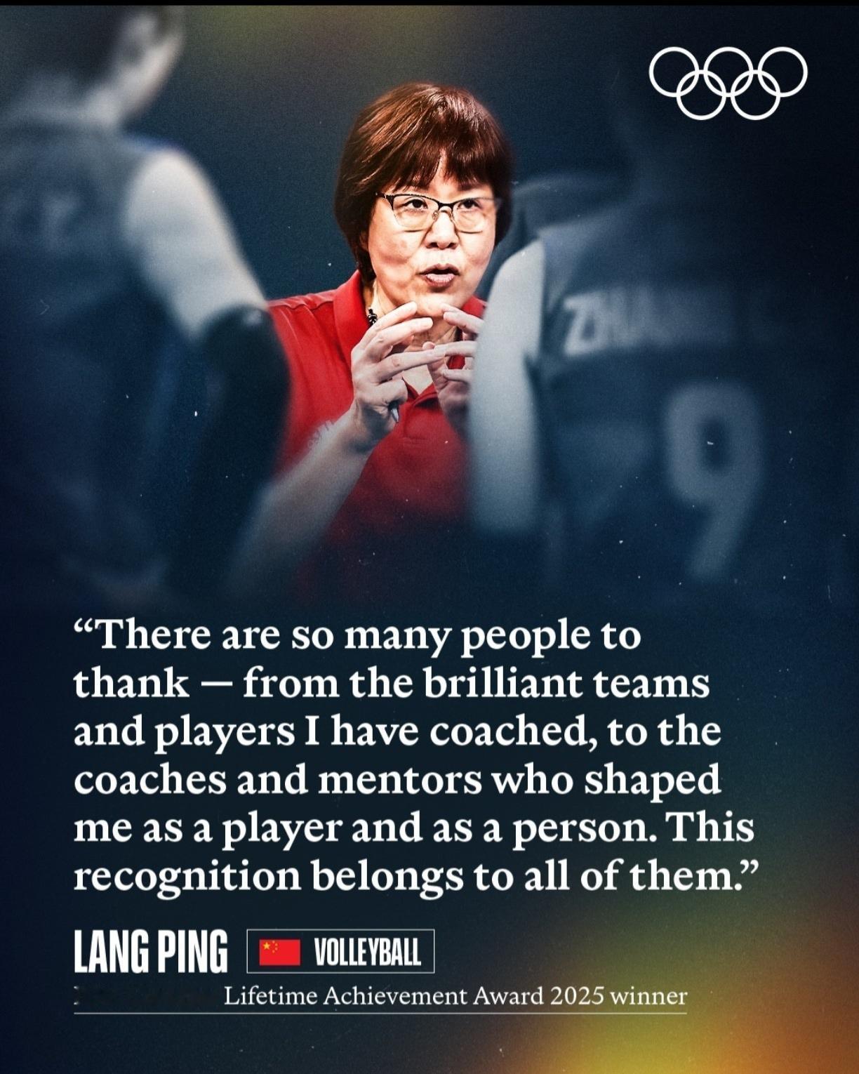 实至名归!郎平获国际奥委会教练终身成就奖! 据国际奧委会官方消息,中国排球教练郎平与古巴摔跤教练劳尔·德·赫苏斯·特鲁希略·迪亚斯获得国际奥委会颁发的教练终身成就奖。显然,郎平对排球事业的贡献,得到了国际奥委会官方的充分肯定,这既是郎平的个人荣誉,也是中国女排的荣誉! 郎平,可以说是中国女排辉煌成就的一个缩影。中国女排获得的10个世界三大赛冠军中,她参与了其中8个冠军的比赛。其中,作为中国女排的主攻手,她获得了“五连冠”中的前4个冠军,而第5个冠军她是以教练身份参与。2015年,她担任中国女排主教练后,又连续获得2015年世界杯、2016年奥运会、2019年世界杯3个世界大赛的冠军! 当然,郎平对排球事业的贡献并不仅仅体现在国内。她曾经分别在意大利俱乐部、美国俱乐部担任主教练,而且还带领美国国家女排参加了北京奥运会的比赛。总之,郎平的一生与排球结缘,以排球为业,为排球而战,获得国际奥运会教练终身成就奖——名副其实,实至名归!祝贺郎平![玫瑰][玫瑰][玫瑰]