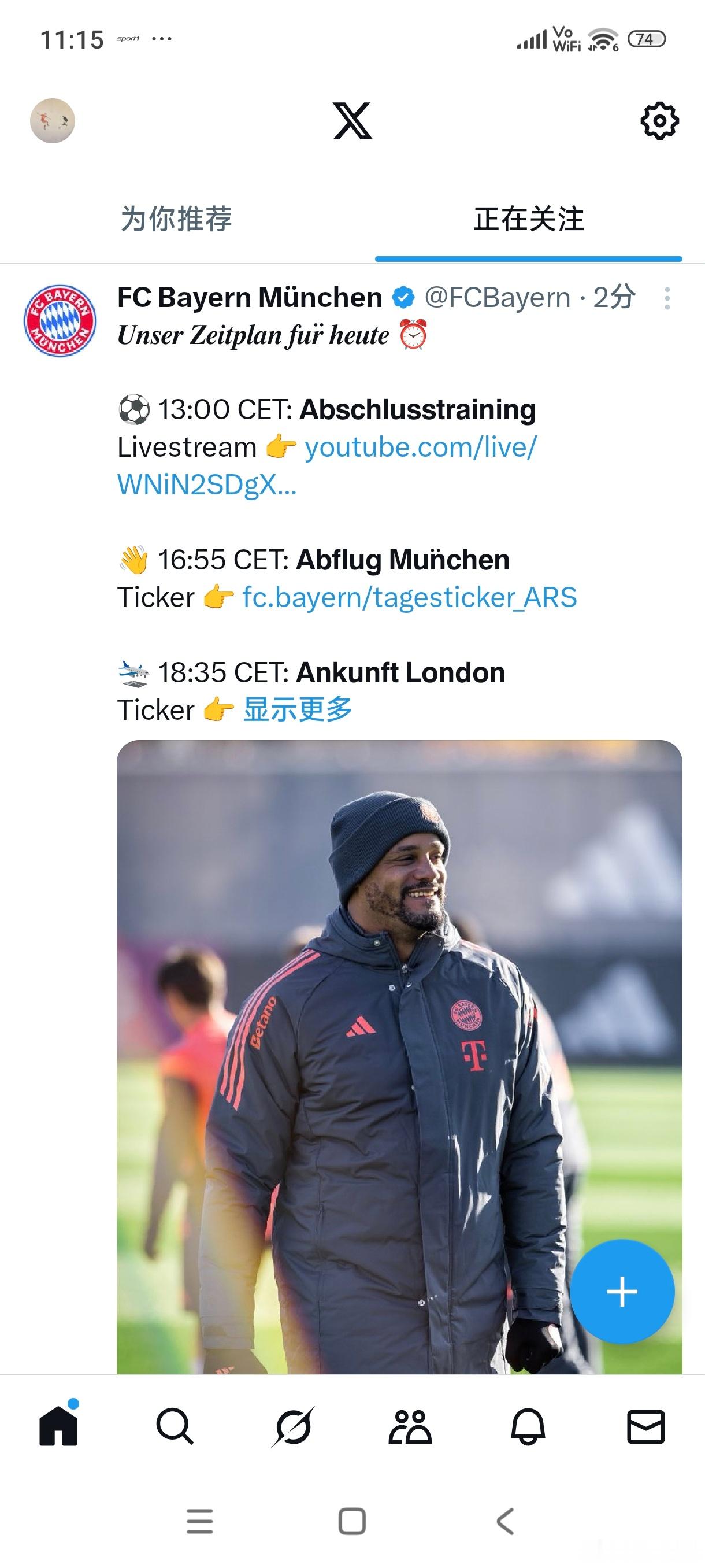 [今日日程]13:00 训练16:55 慕尼黑飞往伦敦18:35 抵达伦敦!