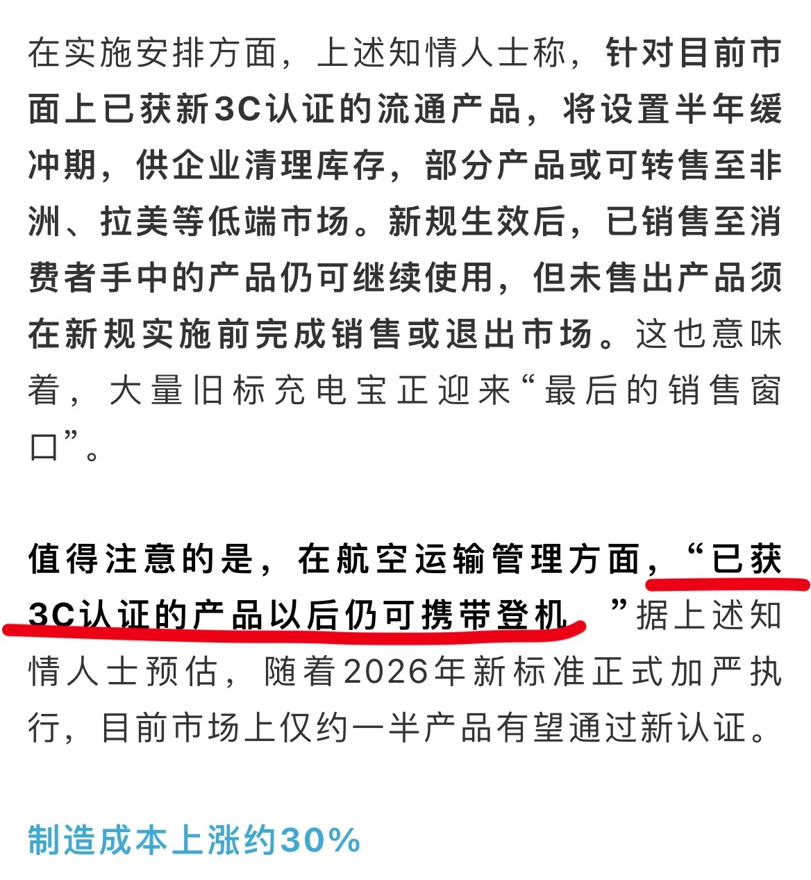 看到前面说“原有3C认证规定将全面失效”,以为又要买新的了,结果后面说“已获3C认证的产品以后仍可携带登机”,虚惊一场..看来我的充电宝暂时保住了。