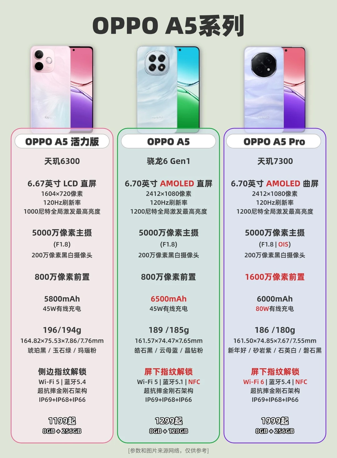 OPPO A5怎么说也不是一个热门机型,特别还是A系列,不过有趣的是,7年前便已经有A5这个型号。 跨越7年,现在的OPPO A5定位依然不变,但整体配置较旧款基本是全方位提升,同时,作为一个线下机型,该机电池更大,注重防水和抗摔,定位比较明确,但性能依然是其弱项。 有趣的是,OPPO A5还发展出一整个系列,包括A5活力版、A5、A5 Pro三个型号,配置和价格呈阶梯型。 对于OPPO A5这个机型,你觉得怎样呢? 数码 手机推荐 OPPO oppo oppo手机 oppoa5 oppoa5pro四款配色 oppofindx8s opporeno13