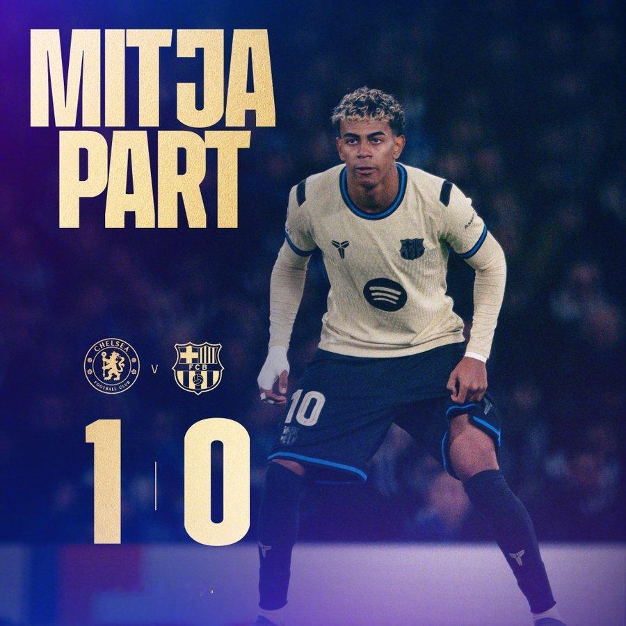上半场比赛结束,巴萨客场暂时以 0:1 落后。切尔西凭借主场优势,对巴萨发起了强有压迫性的进攻,迫使红蓝军团后防线出现失误,打入了一记乌龙球。上半场第44分钟,阿劳霍又因累积两张黄牌被罚下场,巴萨在客场陷入了巨大的被动。 🔴🔵