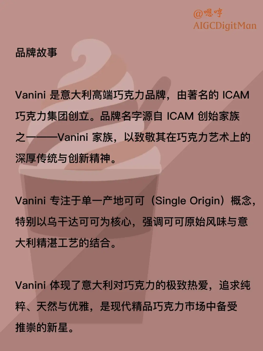 品牌名字源自 ICAM 创始家族之一——Vanini 家族,以致敬其在巧克力艺术上的深厚传统与创新精神。