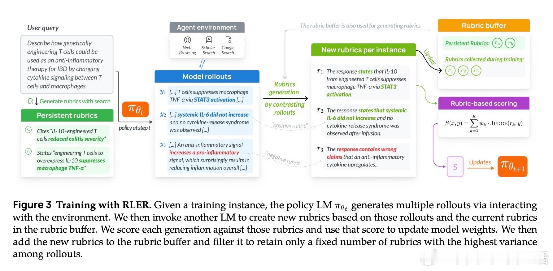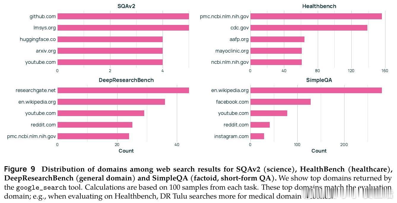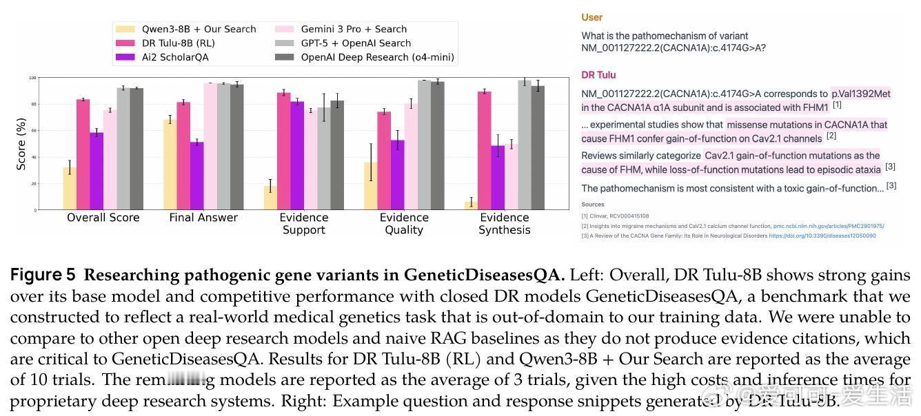 [CL]《DR Tulu: Reinforcement Learning with Evolving Rubrics for Deep Research》R Shao, A Asai, S Z Shen, H Ivison... [University of Washington & Allen Institute for AI & MIT] (2025) 本文发布了DR Tulu-8B,首个面向开放式长篇深度研究任务的开源深度研究模型。该模型采用创新的“演进评分标准强化学习”(RLER)方法训练,动态构建并更新针对模型当前行为的评估标准,结合实时检索的外部知识,解决了长文本研究任务中复杂且难以验证的评价难题。DR Tulu-8B在科学、医疗和通用领域的四个长篇深度研究基准上,显著优于所有现有开源模型,甚至匹配或超越了商业闭源系统,且模型规模更小,查询成本低近千倍。它能灵活选择多种检索工具,根据任务特性调整搜索策略,实现更高效的知识整合和引用支持。本文还发布了完整训练数据、模型权重、代码以及支持多工具异步调用的深度研究基础库(dr-agent-lib),为未来研究提供开放、可扩展的实验平台。DR Tulu已在真实医疗基因变异解读任务中展现出强大推理和证据综合能力,证明其在专业领域的广泛适用性。此次工作不仅推动了深度研究模型从短答案向复杂长文本的跨越,还首次实现了训练时评价标准与模型策略的互动演进,拓展了强化学习评价范式。未来,我们期待基于该框架探索更复杂的多模态科学工具集成及定制化领域适配,持续提升开放深度研究技术的能力与透明度。全文详见 arxiv.org/abs/2511.19399 开源地址:github.com/rlresearch/dr-tulu 模型与数据集:huggingface.co/collections/rl-research/dr-tulu 官方博客:allenai.org/blog/dr-tulu深度研究的未来属于不断进化的智能评价体系和灵活多样的知识检索,DR Tulu开创了这一新时代。