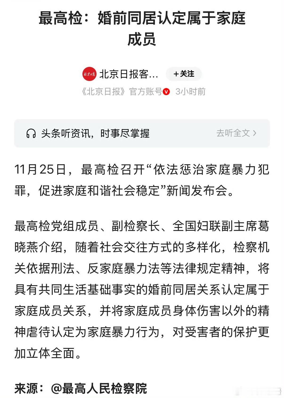 最高检:婚前同居认定属于家庭成员