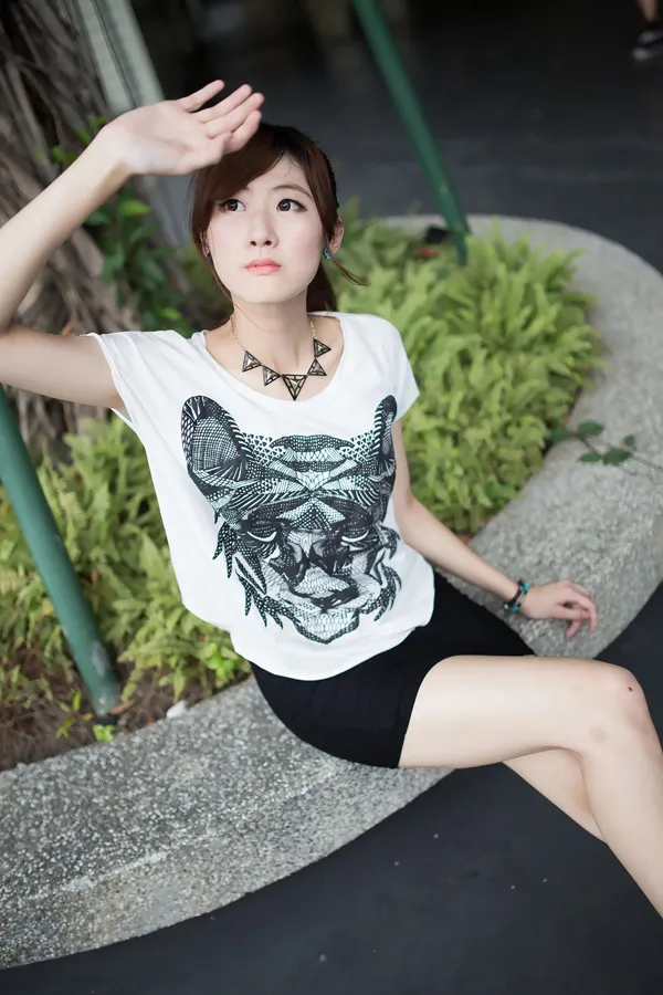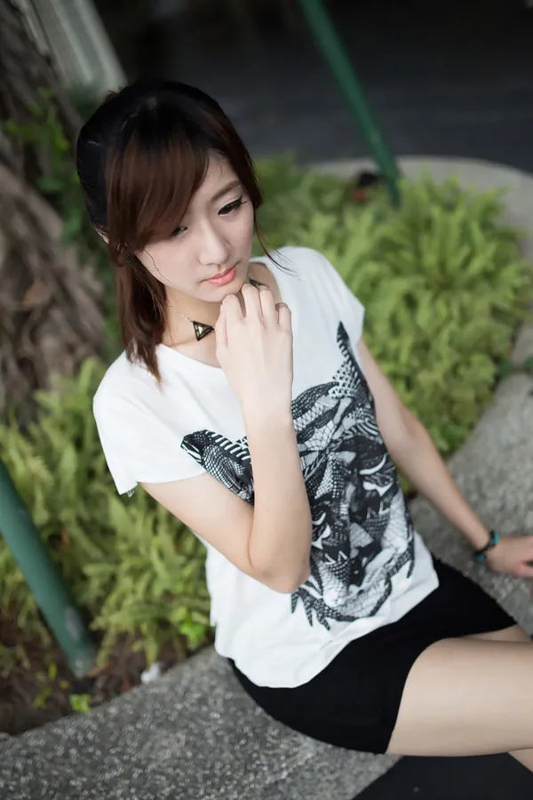 甜美可爱的少女,轻轻抚摸胸口,展现出迷人的魅力。