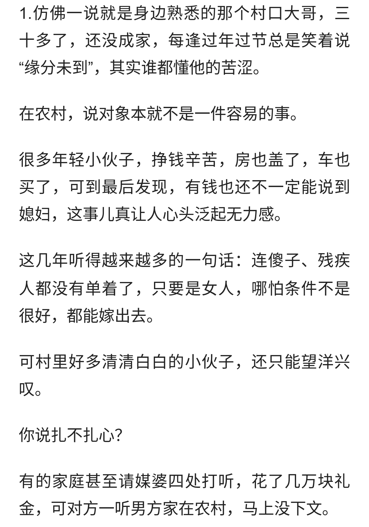 为什么总是农村的光棍数量众多引人关注?而城里的光棍却鲜少被提及、很少有...