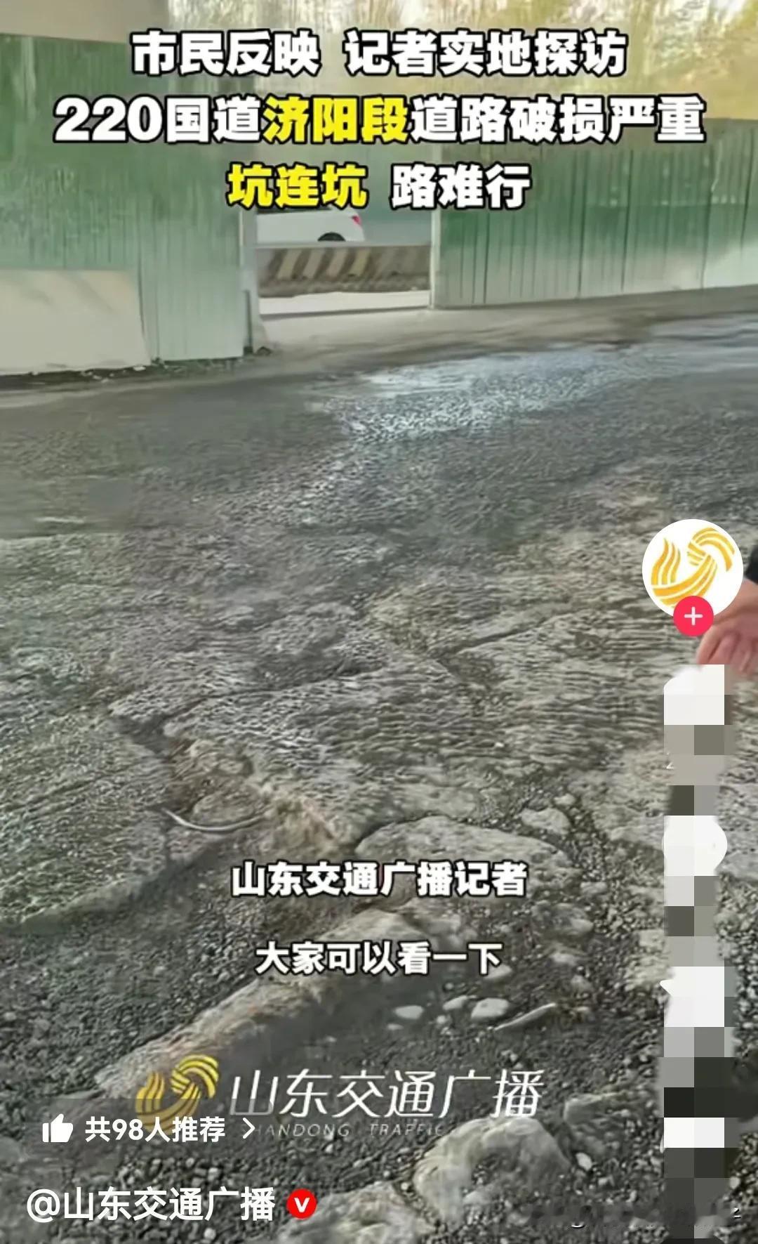 吆,省级媒体报道济阳回河220优秀路况了… 虽然只拍了一个小坑…