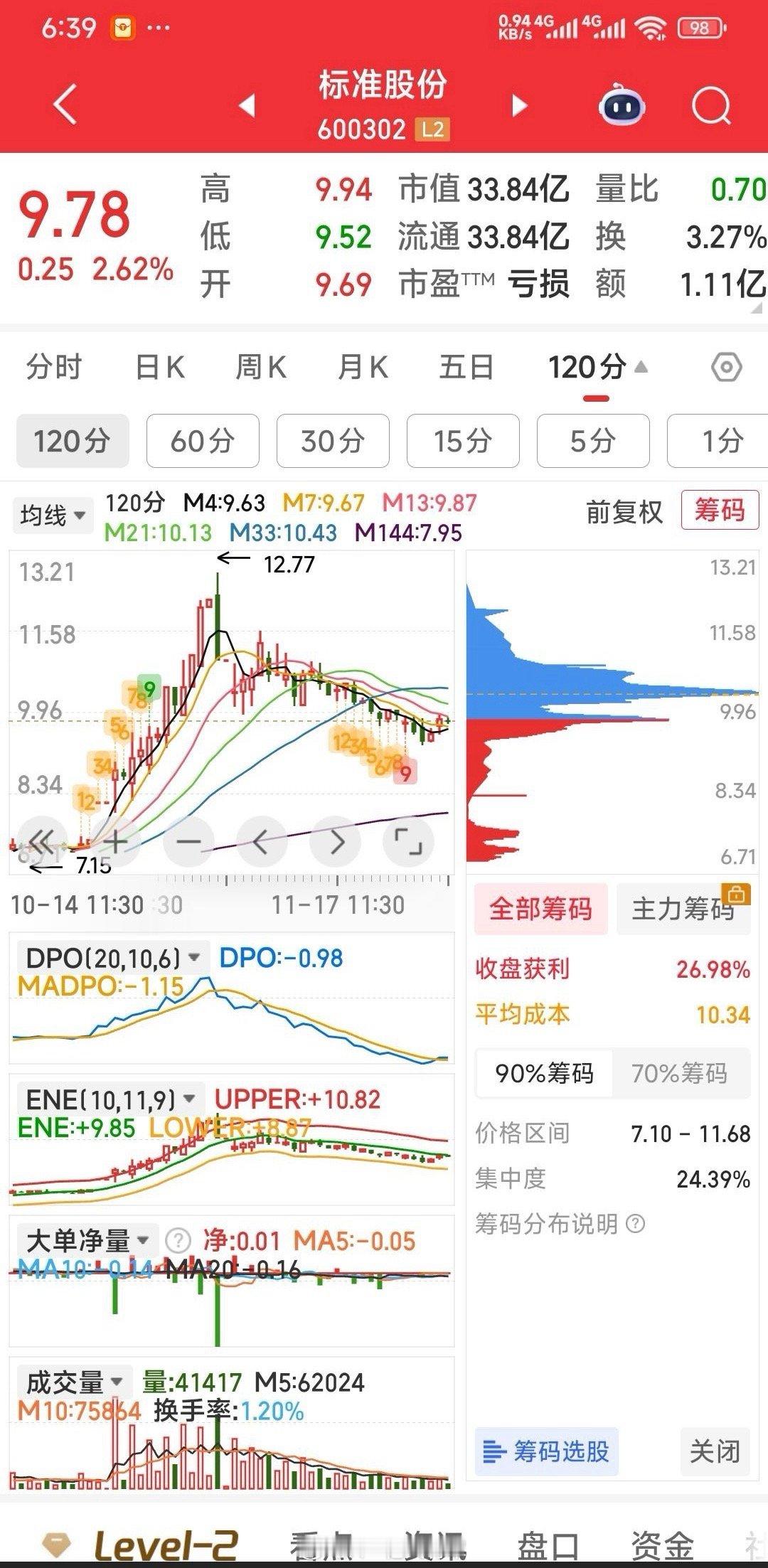 【手中4牛今日观点】手中4牛:标准股份,榕基软件,航天发展,福石控股。今天重点关注标准股份的启动拉升,从120分钟K线看,我认为标准股份己到启动拉升的节点了。榕基软件,航天发展,福石控股三票,强则留,不强可择机减仓。