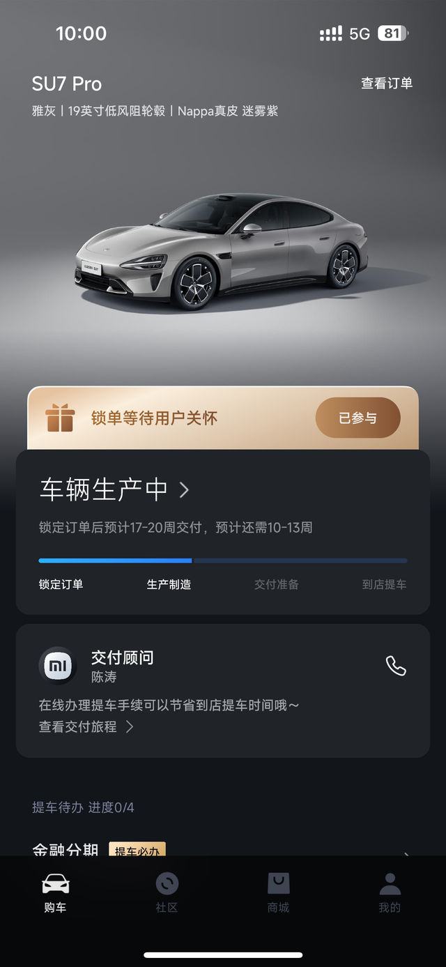 SU7pro 外灰内紫成都转 su7pro 未提车过户转! 平价转只想收一点定金!内紫外灰没有选配,由于自己私人原因不需要这辆车了,可亲自陪着线下提车!