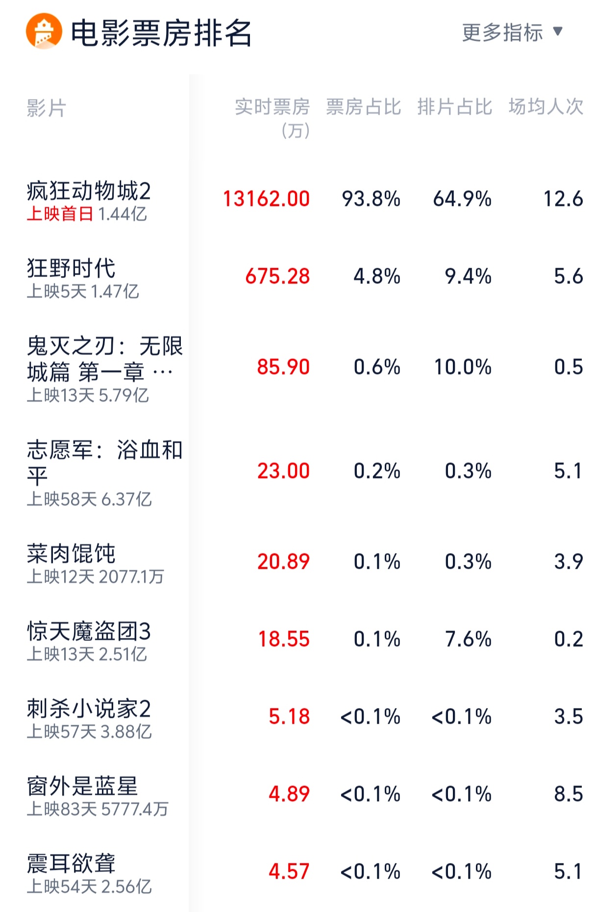 《疯狂动物城2》狂吸大盘啊,多久没有看到日票房过亿的片子了,而且全天票房达到了2