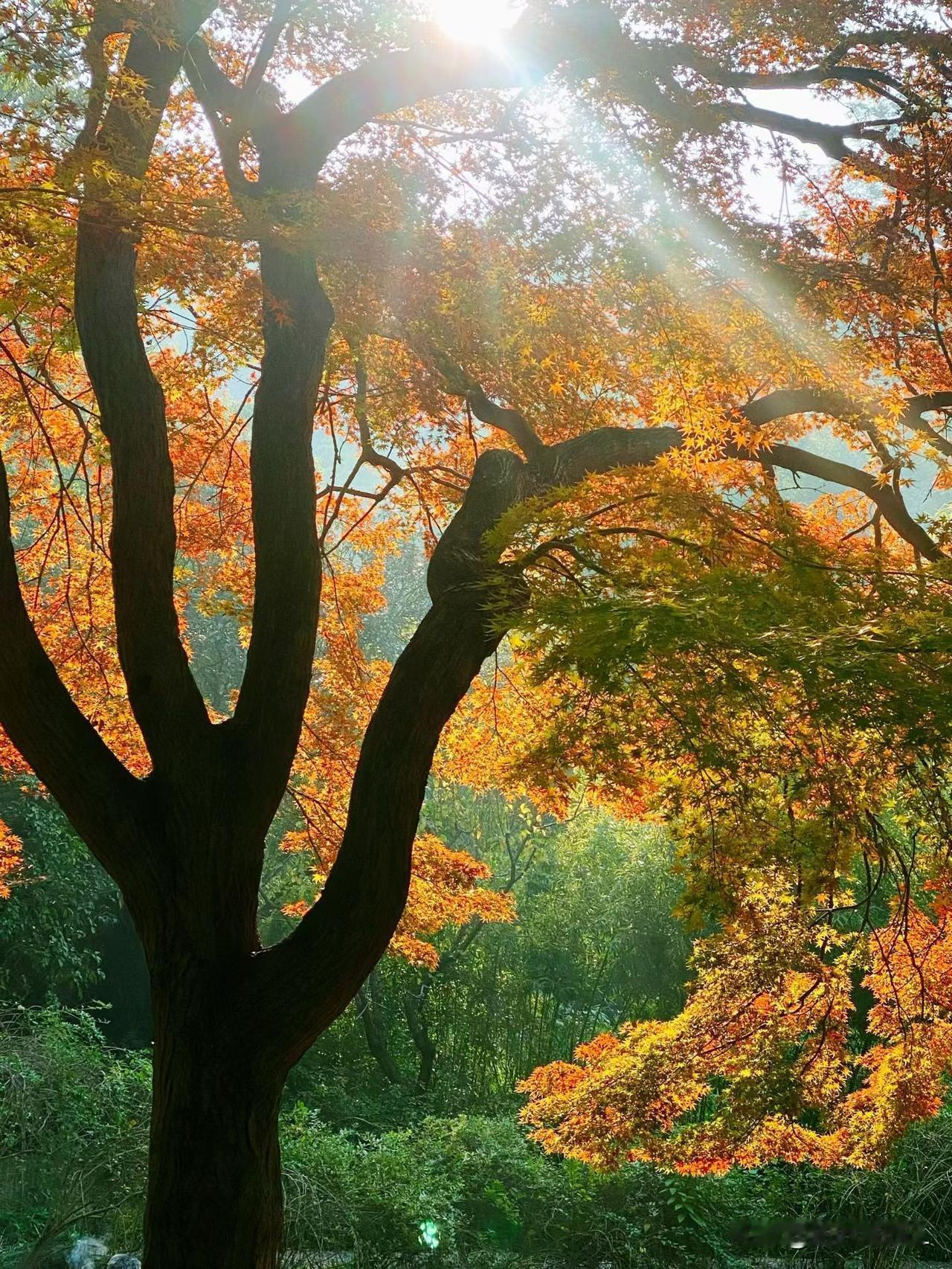 冬日暖阳,洒满林间,枫叶如火,美不胜收!