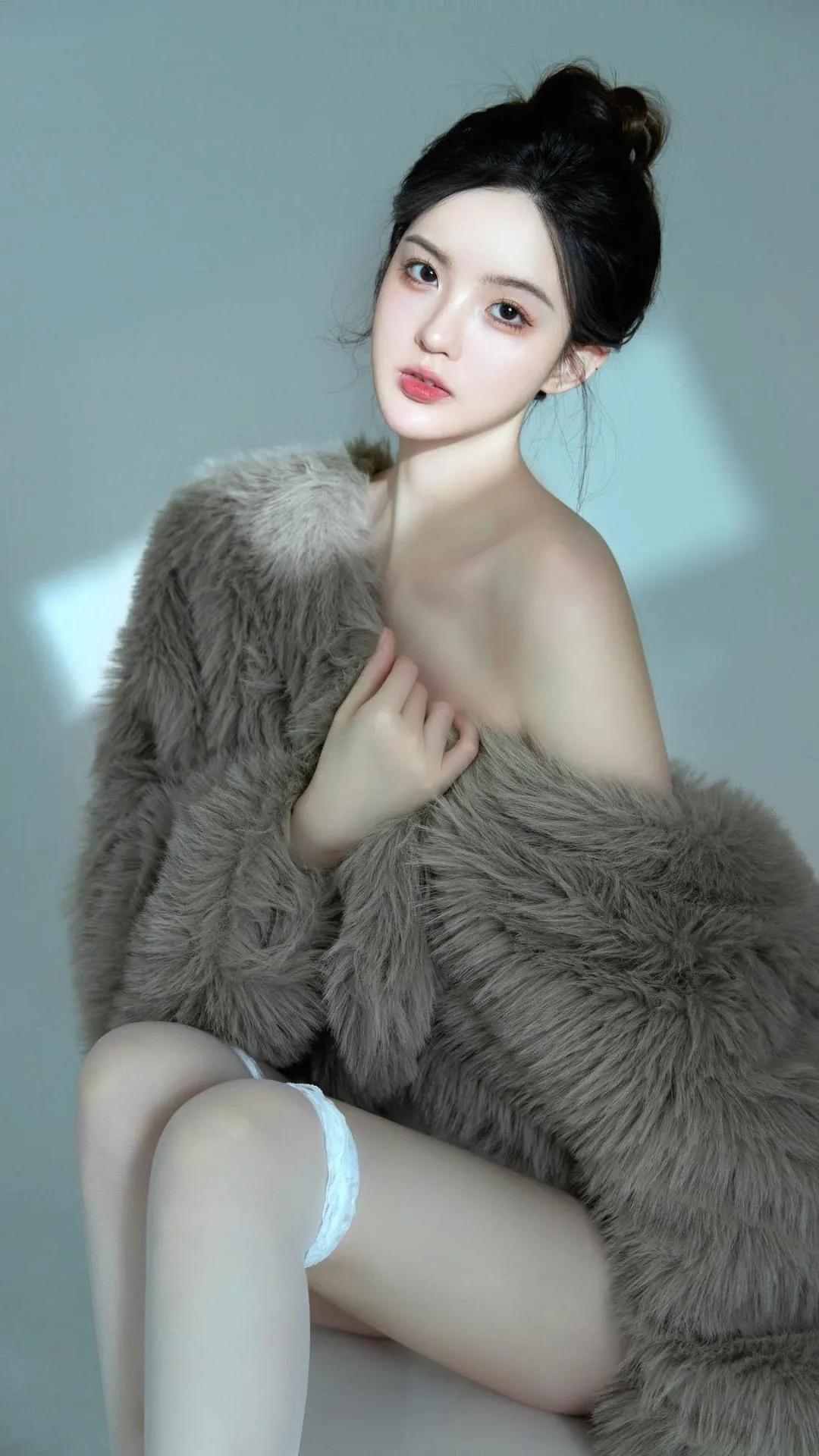 冬日暖阳下,温柔少女与毛绒绒的白色外套相映成趣,宛如童话中的梦幻场景。🌞💕?