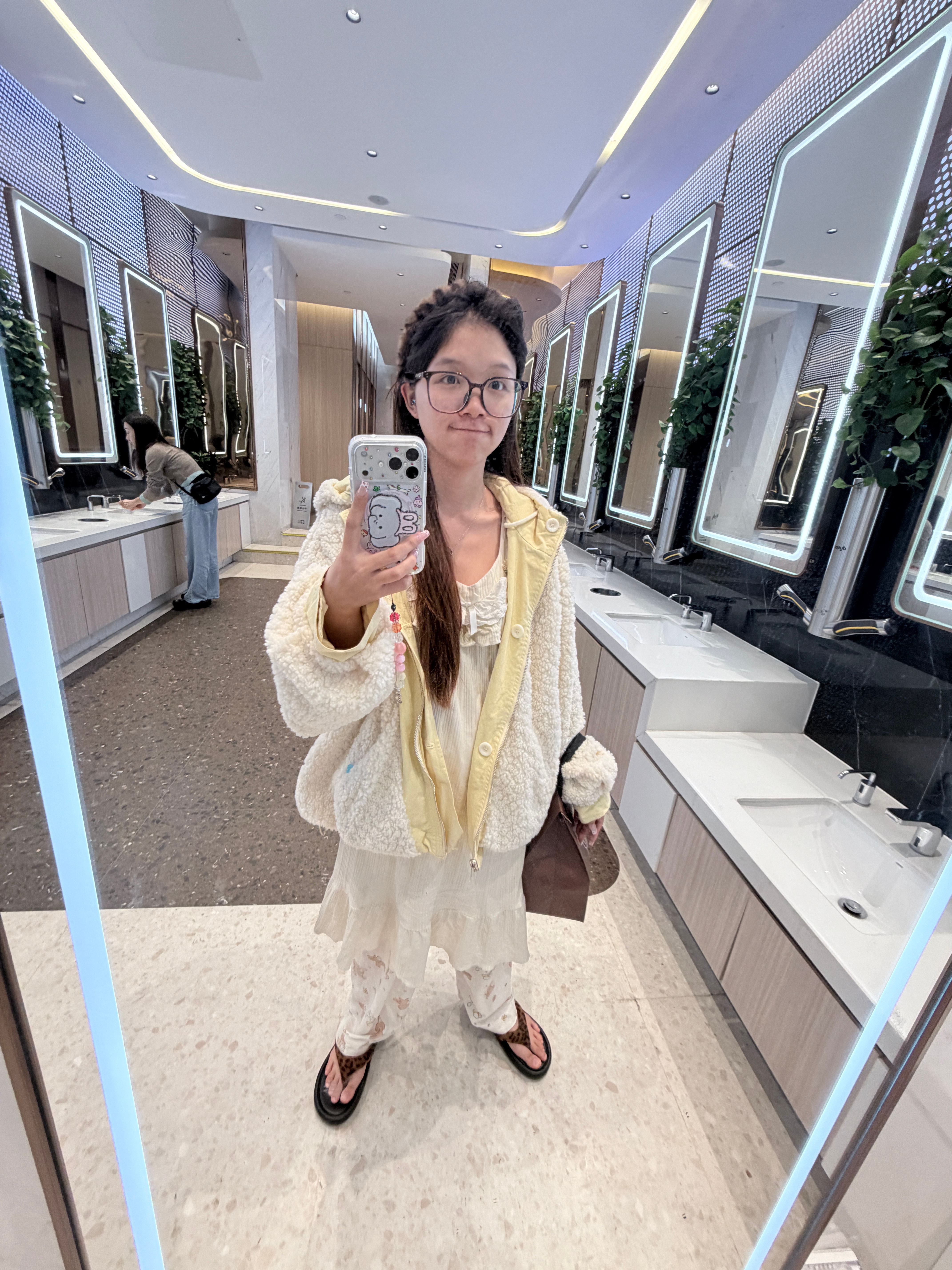好搞笑。昨天陪qqw去做了美甲。还去逛了商场吃了个饭。去厕所才发现我穿的如此恶心