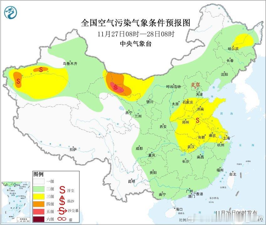【沙尘和霾】今晨在吉林、黑龙江部分地区有霾,导致空气质量出现重污染甚至严重污染。在甘肃河西走廊、宁夏中部和内蒙古西部的部分地区,因为沙尘导致空气质量爆表。8时PM10浓度(微克/立方米):甘肃张掖904、金昌1041、宁夏中卫1164、内蒙古巴彦淖尔1070。今天白天到夜间,冷空气的大风在甘肃、内蒙古、宁夏、陕西等地可能继续吹起沙尘,并且部分沙尘随着冷空气向东南推进传输,今晚到明晨,沙尘向东可能波及到山西河北河南山东甚至苏皖北部一带。今晚到明天东北地区,降雪以及冷空气到来,霾会逐渐被清除。