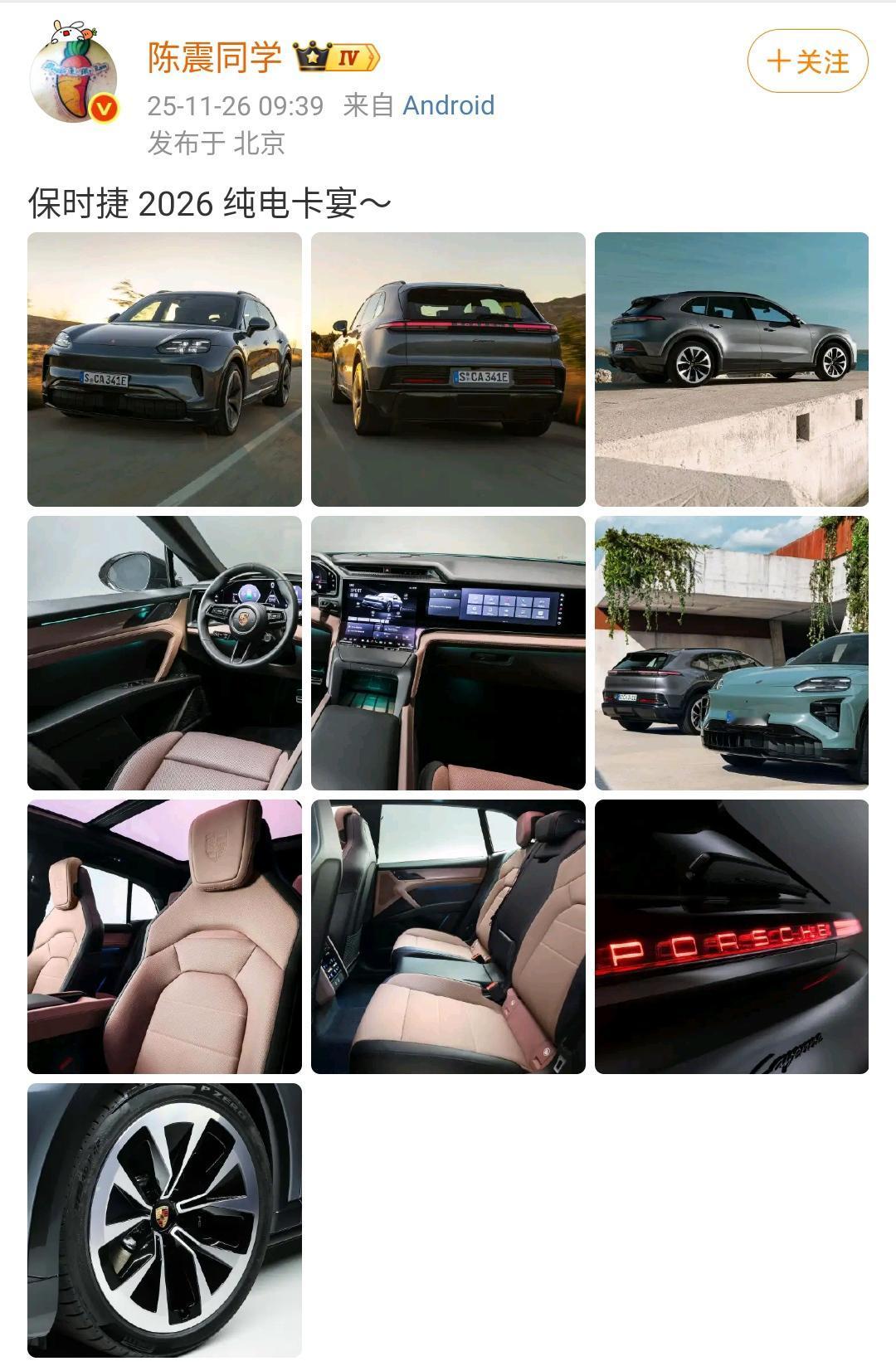 陈震:保时捷 2026 纯电卡宴! 保时捷新款纯电动卡宴其实长得还挺好看的,大家看习惯之后就觉得还是不错的,这个设计是有滞后性的。 比如说保时捷之前推出来的纯电动轿车,现在再回过去看看也是挺好看的,之所以卖的不好,是因为很多买保时捷的人心想都买保时捷了,为什么要买一个电车呢?