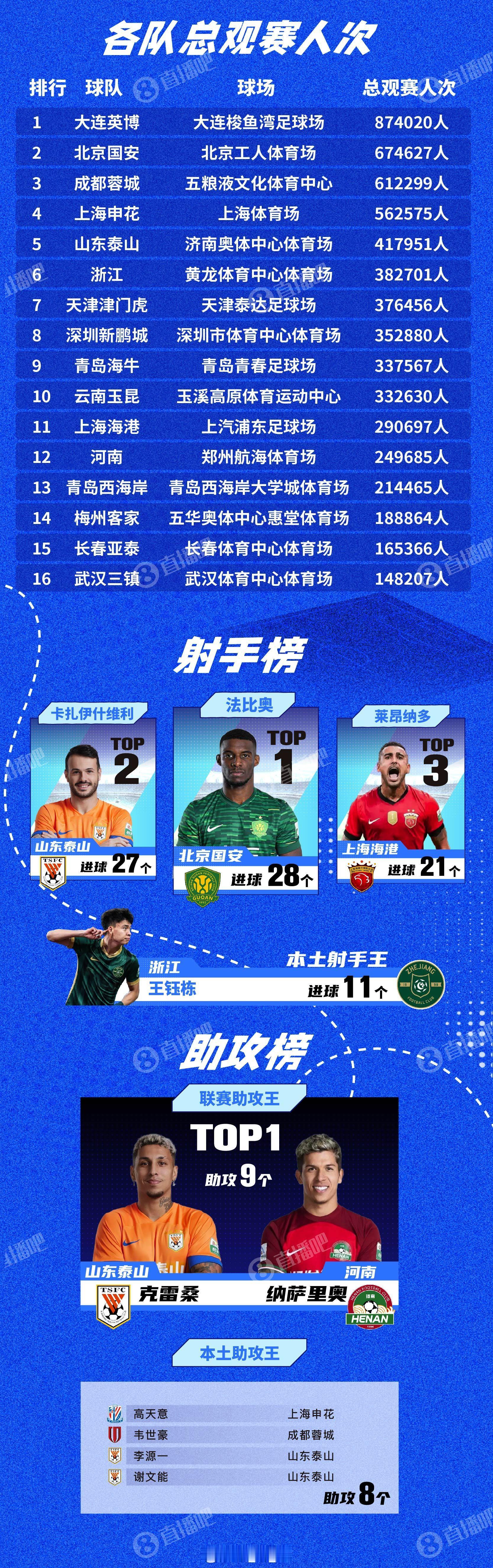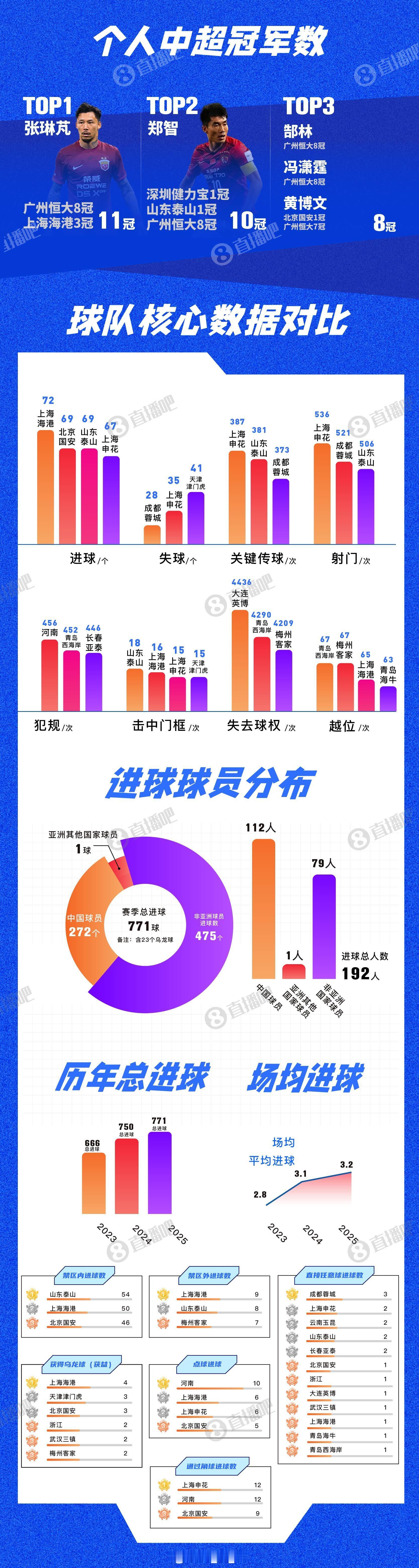 数据看中超 直播吧中超赛季数据盘点。自由橙山东泰山