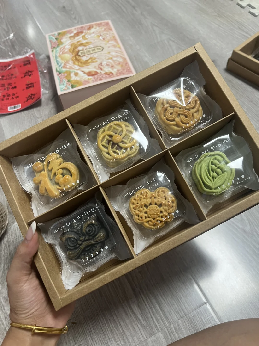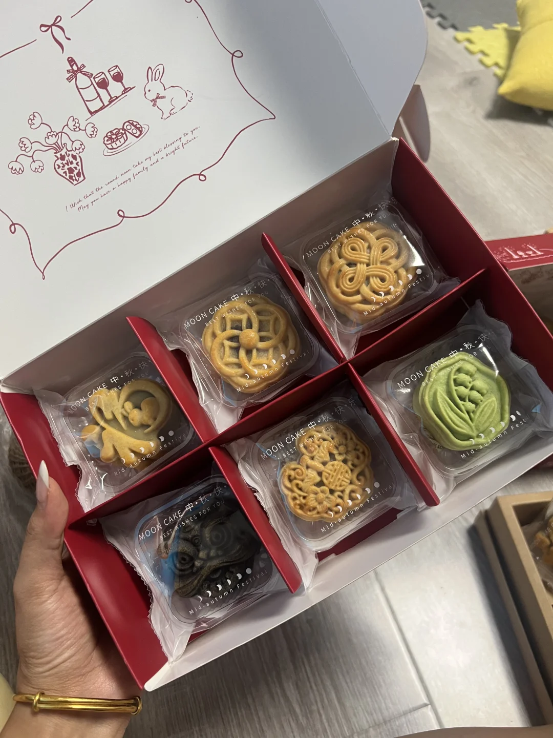 突然羡慕大烤箱可以同烤三四层[笑哭R] 我这个烤箱风炉上色不均匀只能一层一层烤 一层大概20个 一共做了九种口味 过节给亲戚朋友们准备的 这次买的两款礼盒很满意!!!