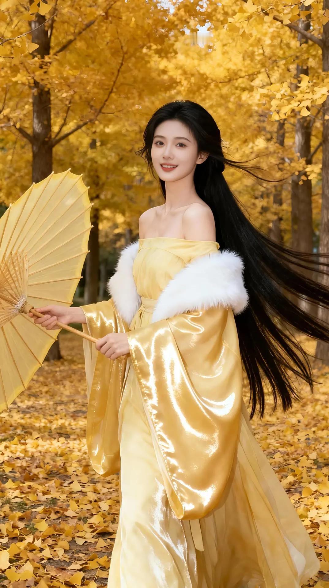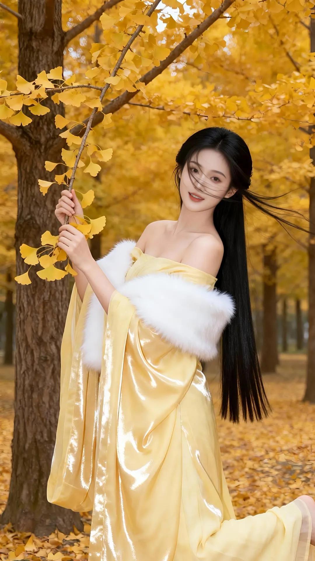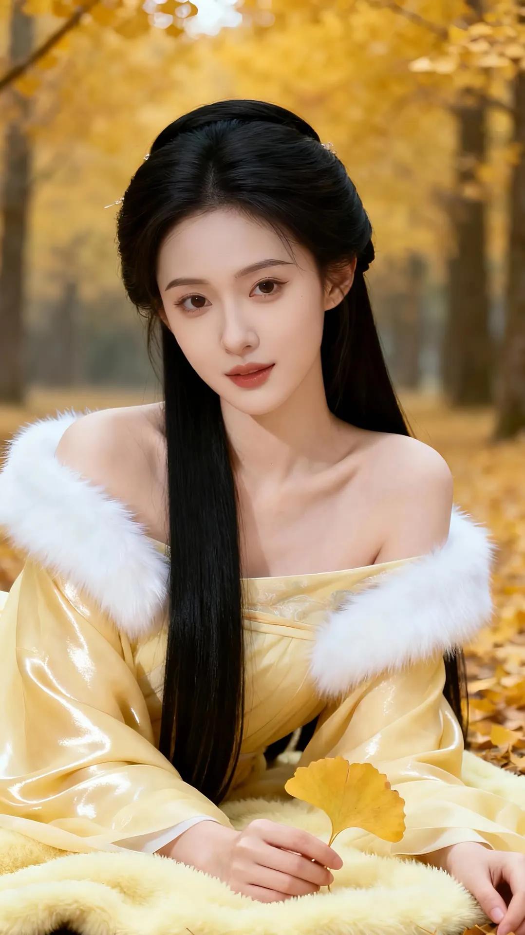 秋日暖阳下,金发少女手持落叶,微笑如花。