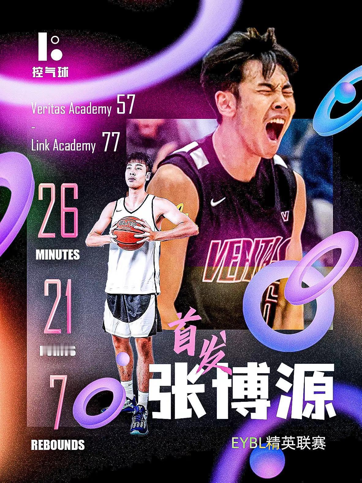 今日结束的EYBL联赛,中国男篮新星张博源所在的Veritas Academy57-77不敌卫冕冠军Link Academy。张博源首发出场,出场26分钟,投篮5/12,罚球8/9,得到21分7篮板1助攻,失误3次。张博源美高EYBL