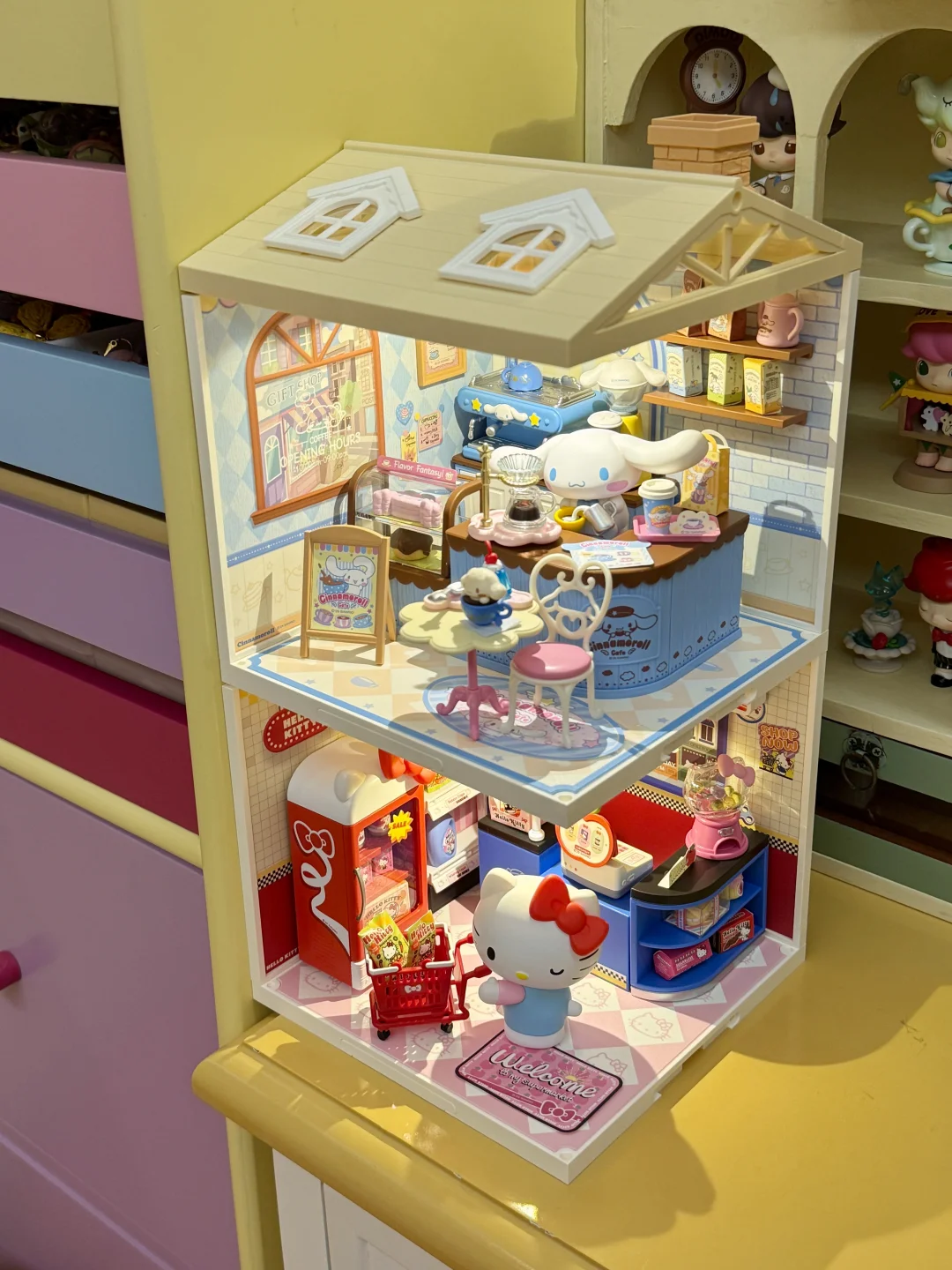 90后幼稚鬼把极繁卧室布置成童话小镇! 躲在房间拼迷你小屋,和三丽鸥大明星解锁开店时光! 布丁狗小木屋🍮玉桂狗咖啡店☕️hello kitty超市🍎 开灯一刹那我就是世界上👄幸福的人!