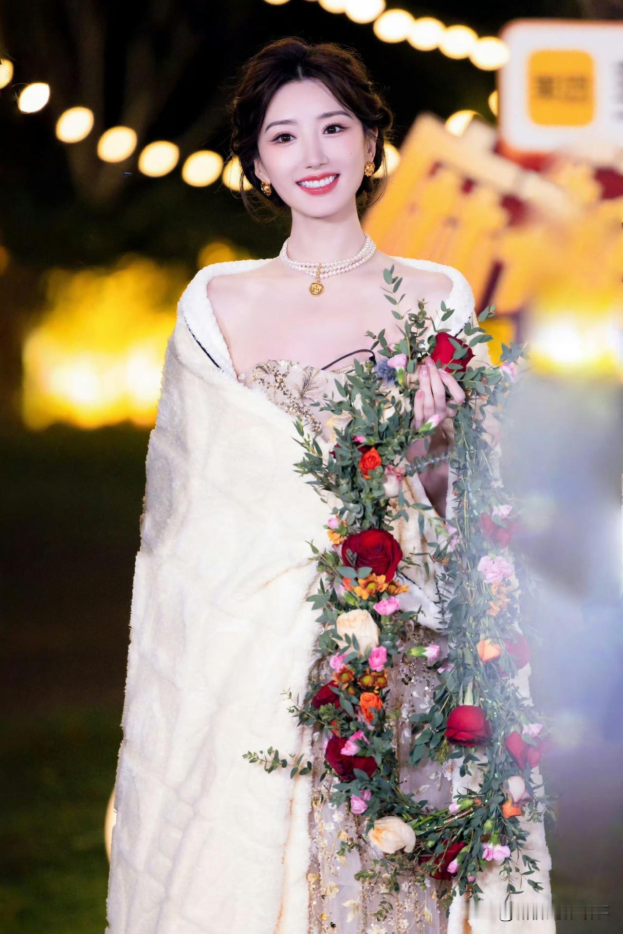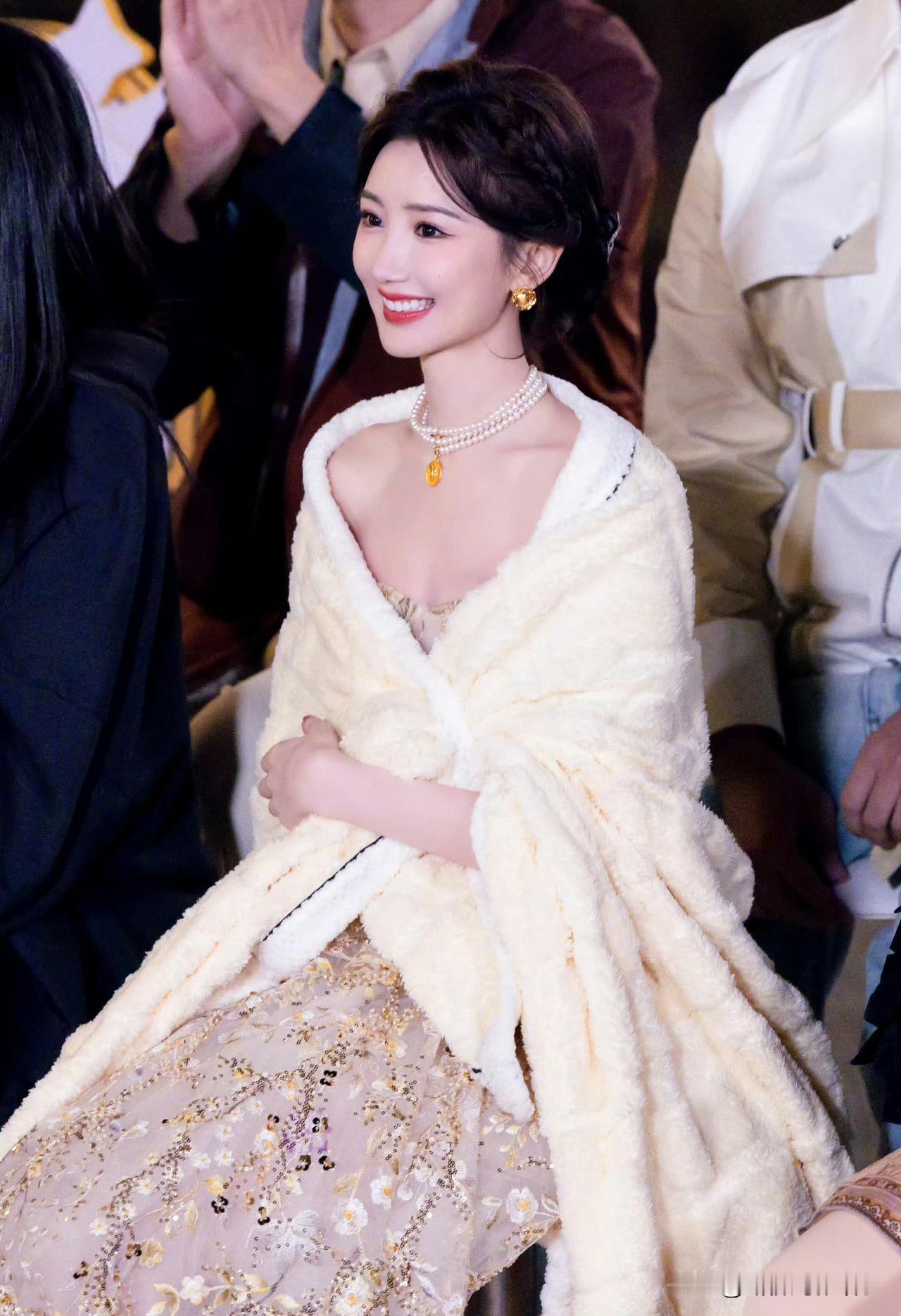 毛晓彤:长在央视审美上的“氛围感美人” 毛晓彤这组造型太戳了!香槟金礼服衬得她肤白胜雪,珍珠项链配毛绒披肩,温柔又贵气。巴掌脸+甜笑,既符合央视偏爱的端庄大气,又自带灵动娇俏。连裹毛毯的抓拍都像画报,这张脸是把“甜妹贵气感”焊在审美点上了。