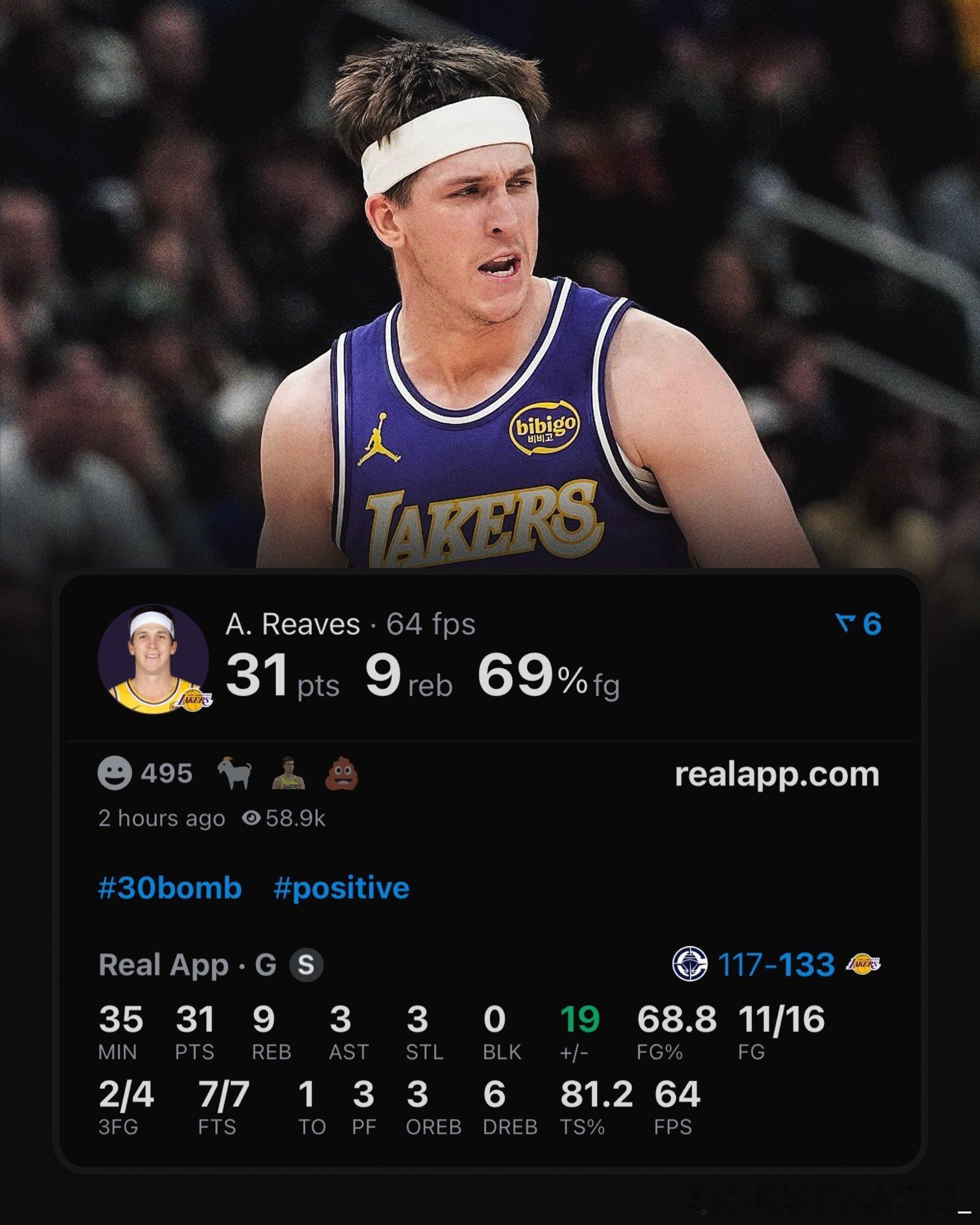 洛杉矶湖人 里夫斯-我的评分:零敲碎打又是一场30+,该得分就得分,若不是裁判得分还能继续增高,而且今天高效一批nba趣评分快船vs湖人