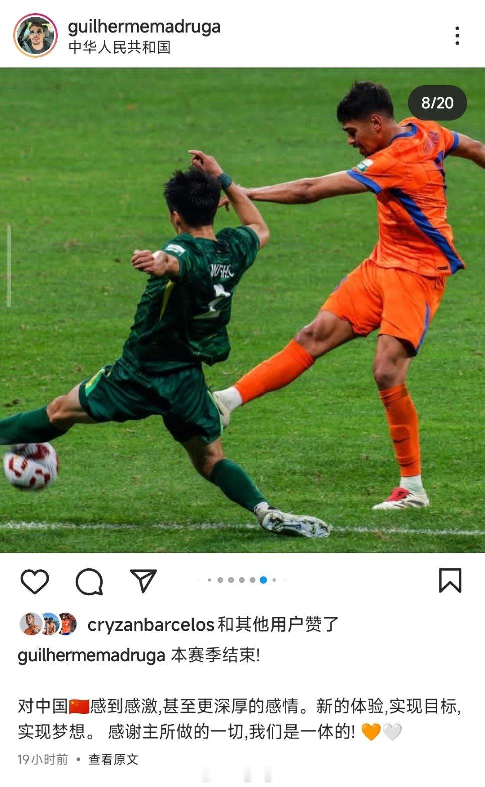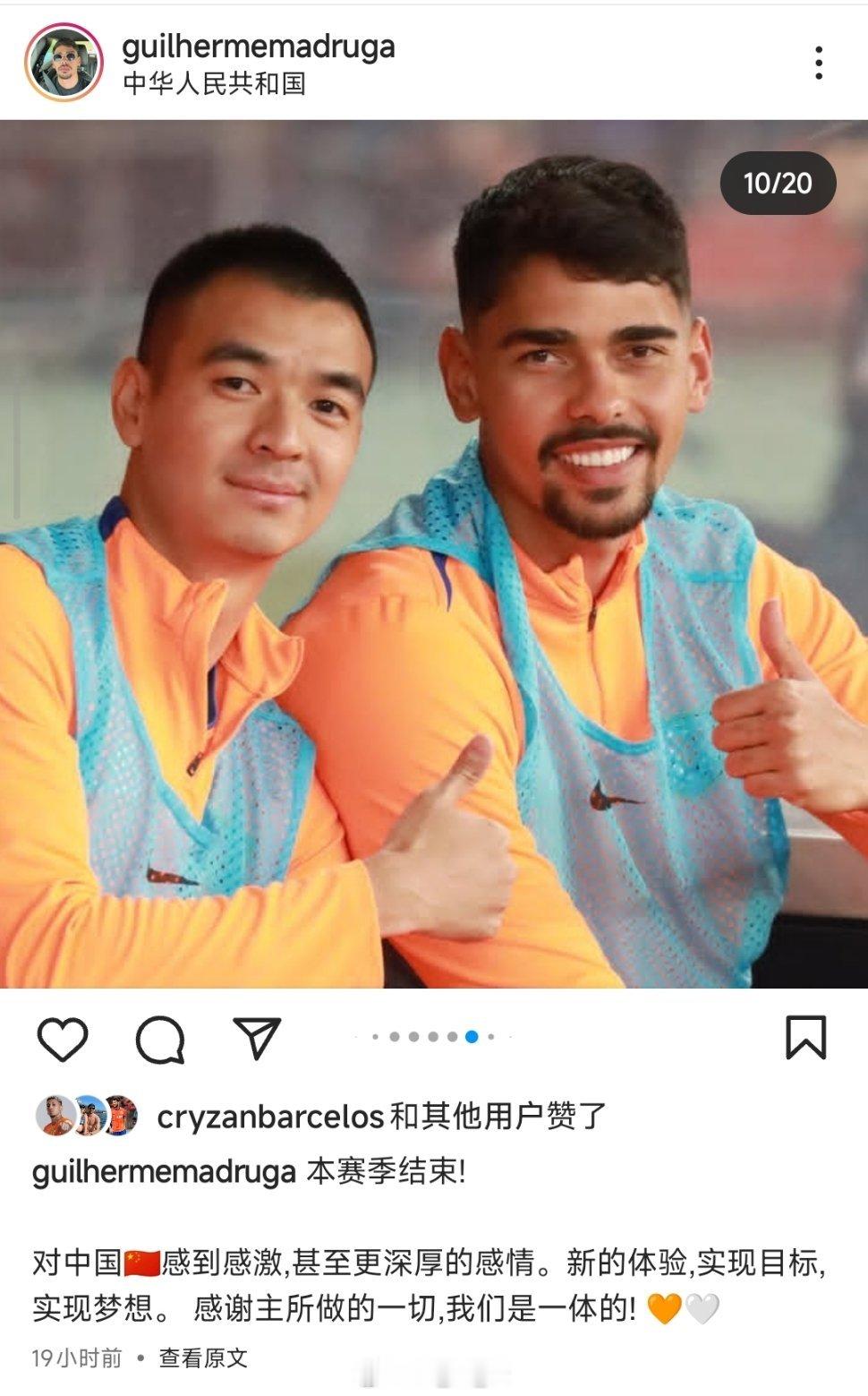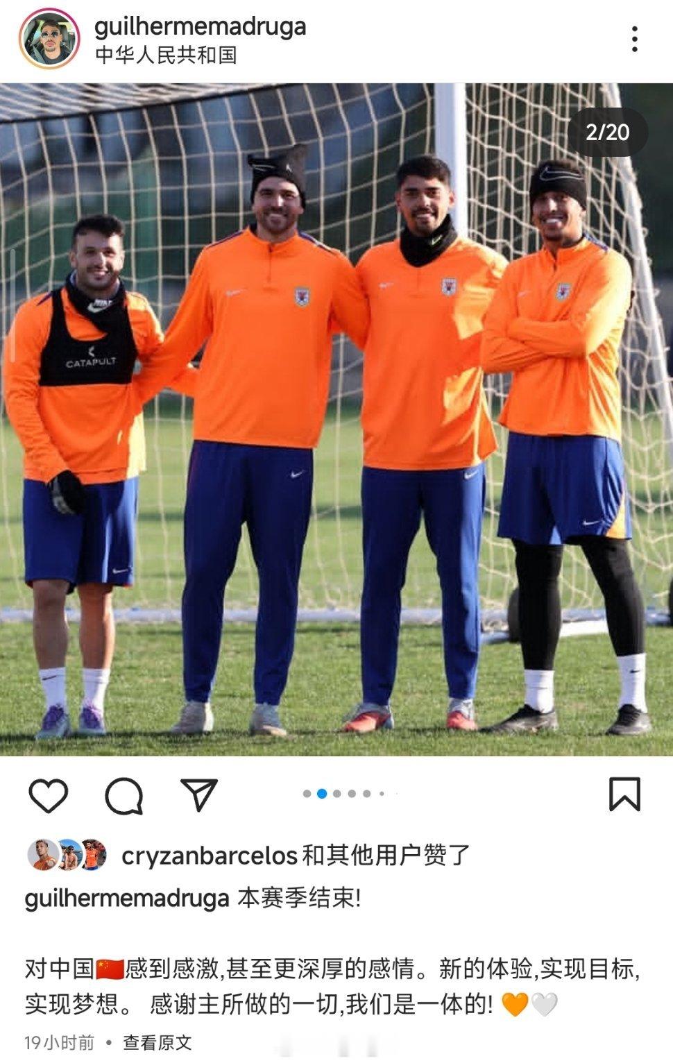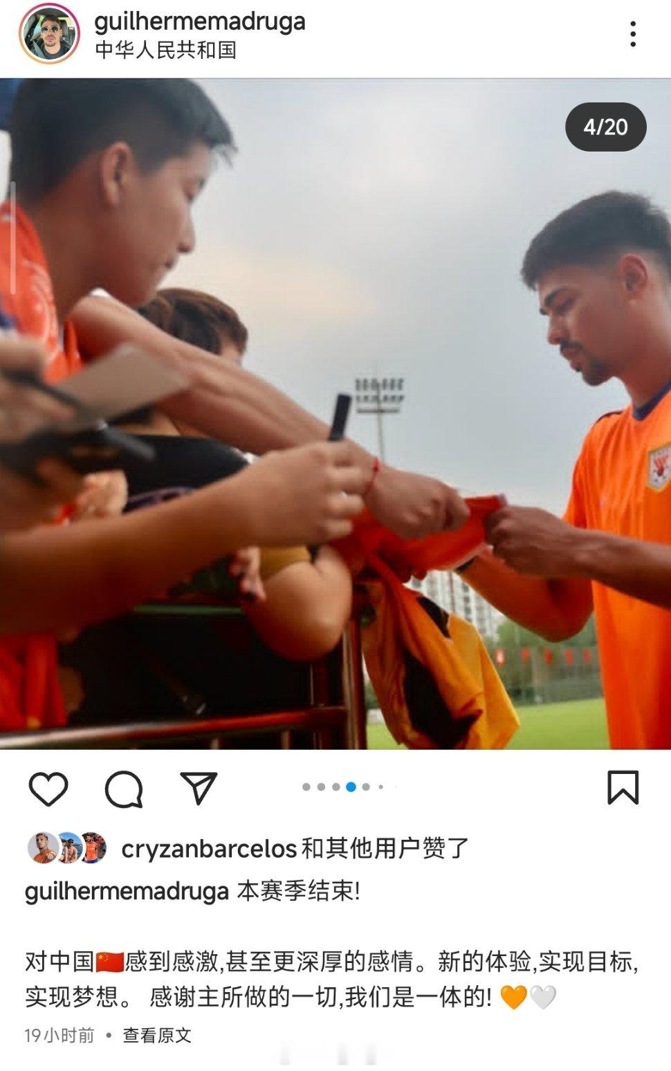 马德鲁加社媒晒照总结赛季自由橙山东泰山
