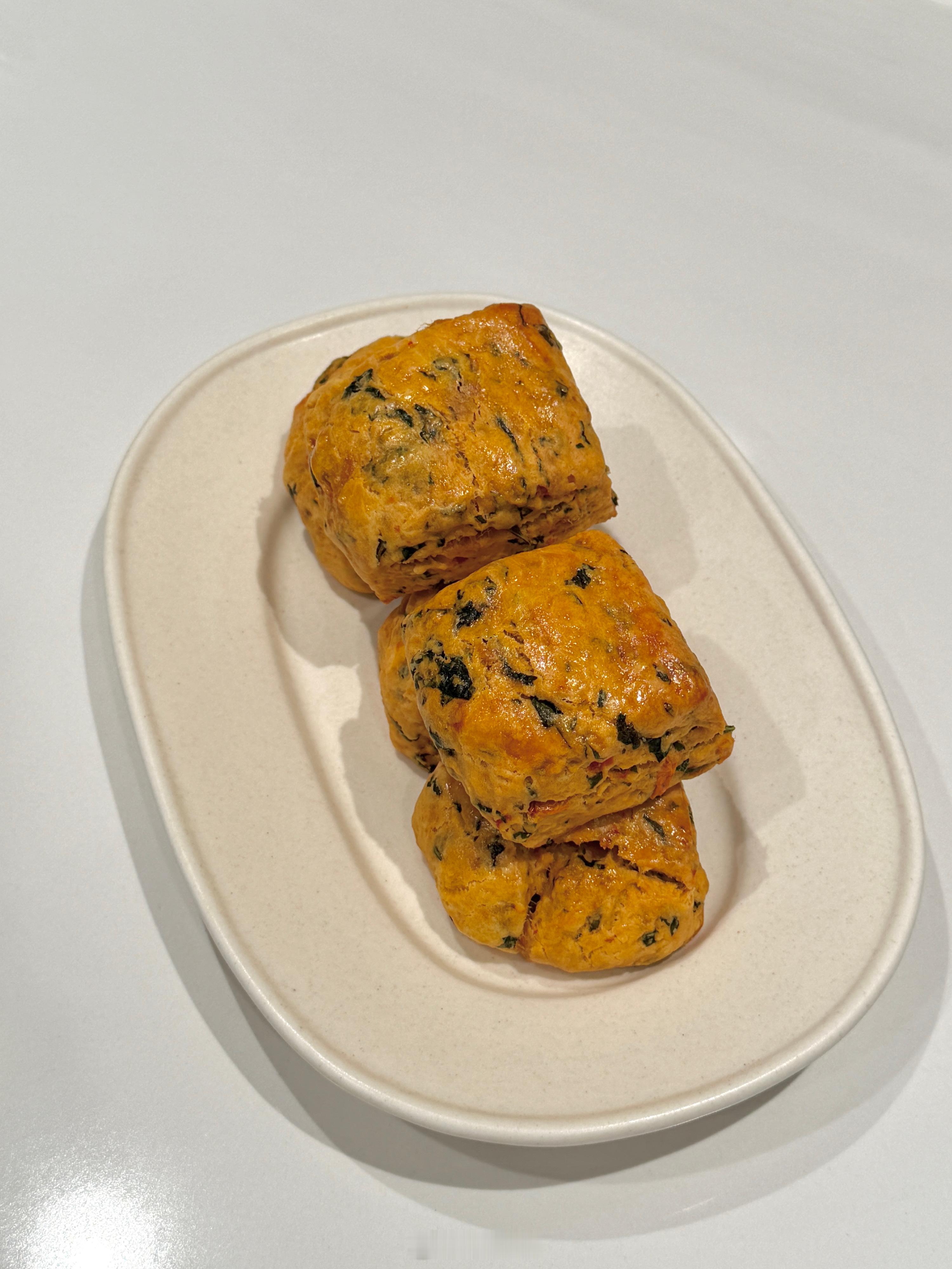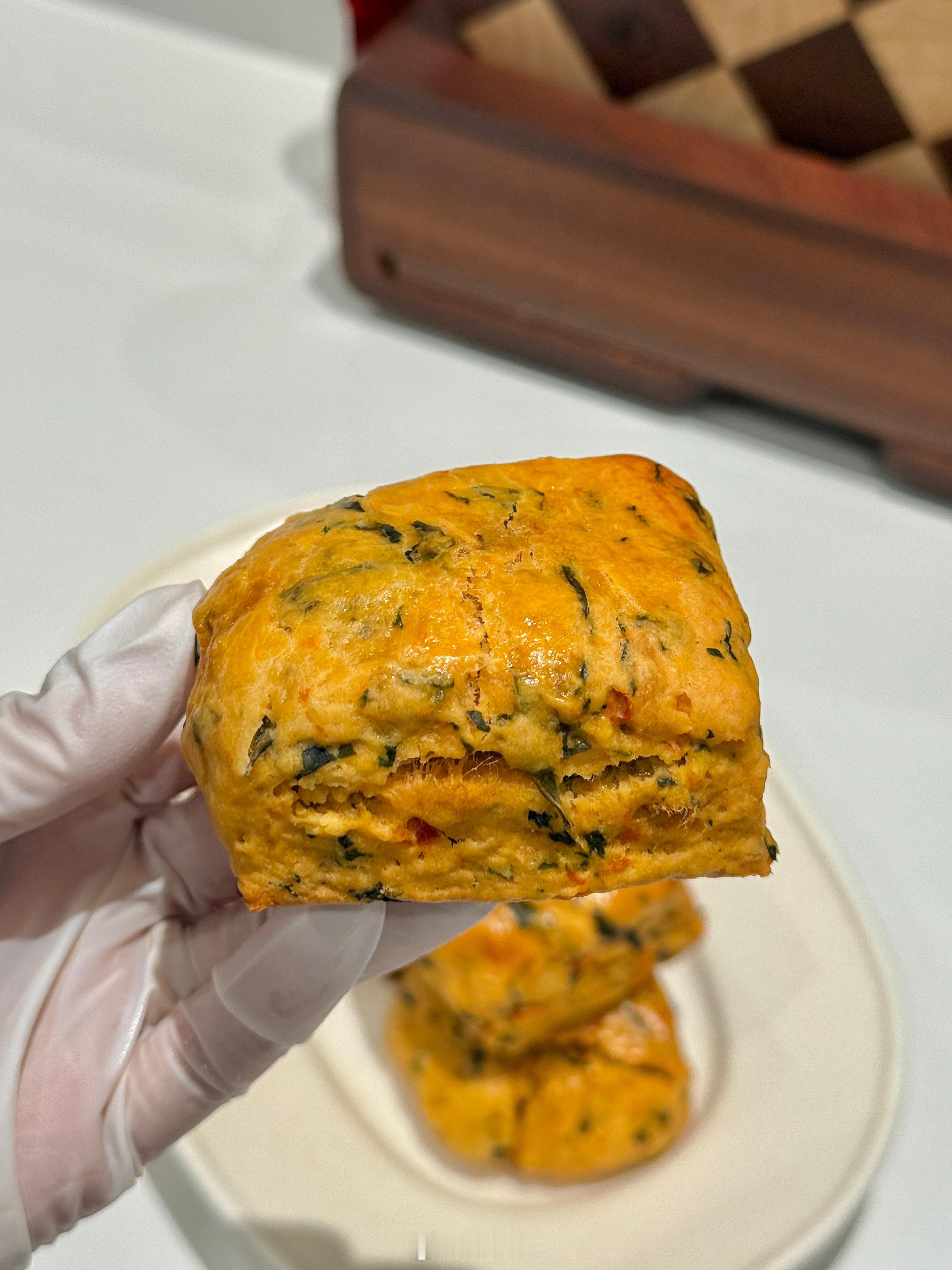 这个番茄罗勒司康要成为我的年度司康了!!烘焙小白想入坑,可以先从司康练手,操作简单,0失败率,做好的也很好储存,冷冻保存,想吃的时候,拿出来微波炉热一下or烤箱复烤一下,几分钟搞定~
