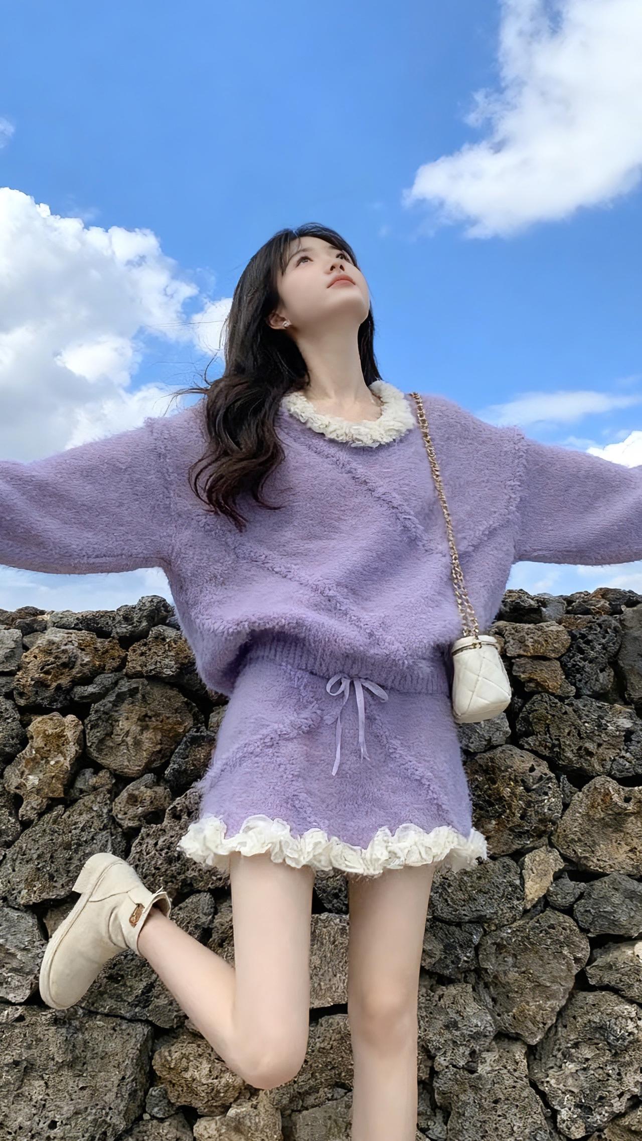 降温也能当甜妹!这套毛茸茸的针织套装,裹在身上像被小熊玩偶抱住,软到想rua自己~甜美穿搭 出游穿搭 约会穿搭 小个子显高显瘦穿搭