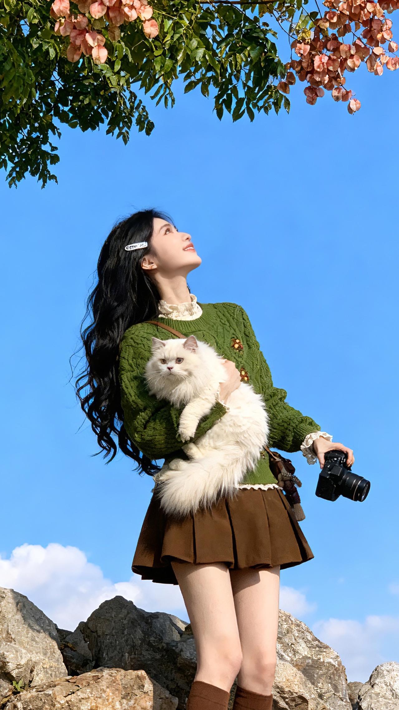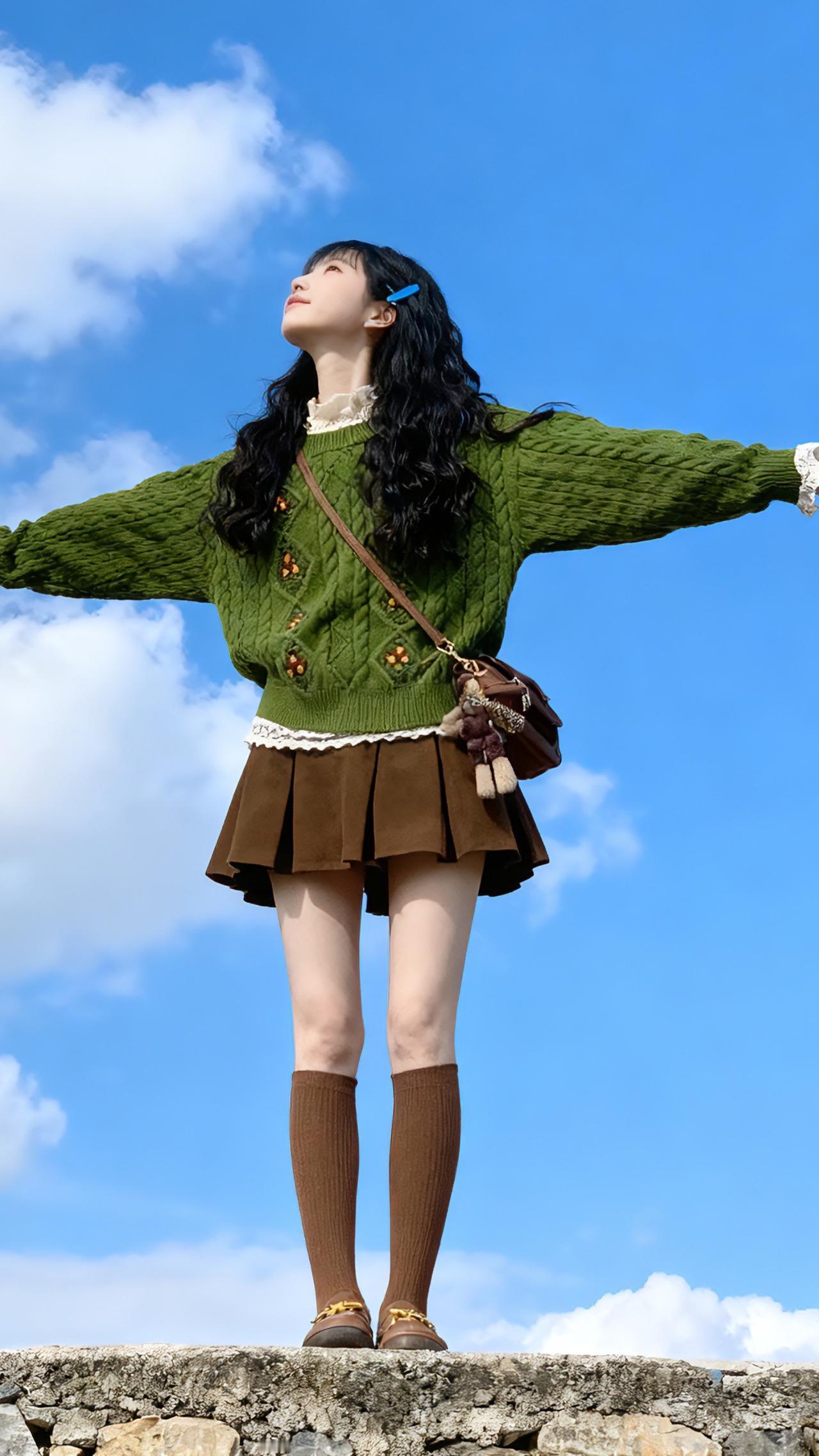 被追问了800次的秋日穿搭🍂 谁穿谁是韩系女高本高!! 橄榄绿毛衣+棕色百褶裙 这个配色直接把秋日氛围拉满🍁 毛衣的小花朵刺绣+蕾丝内搭 甜妹细节感狠狠拿捏了~ 配同色系长袜+小皮鞋 青春感直接溢出屏幕!文艺穿搭 出游穿搭 旅行穿搭 美爆了