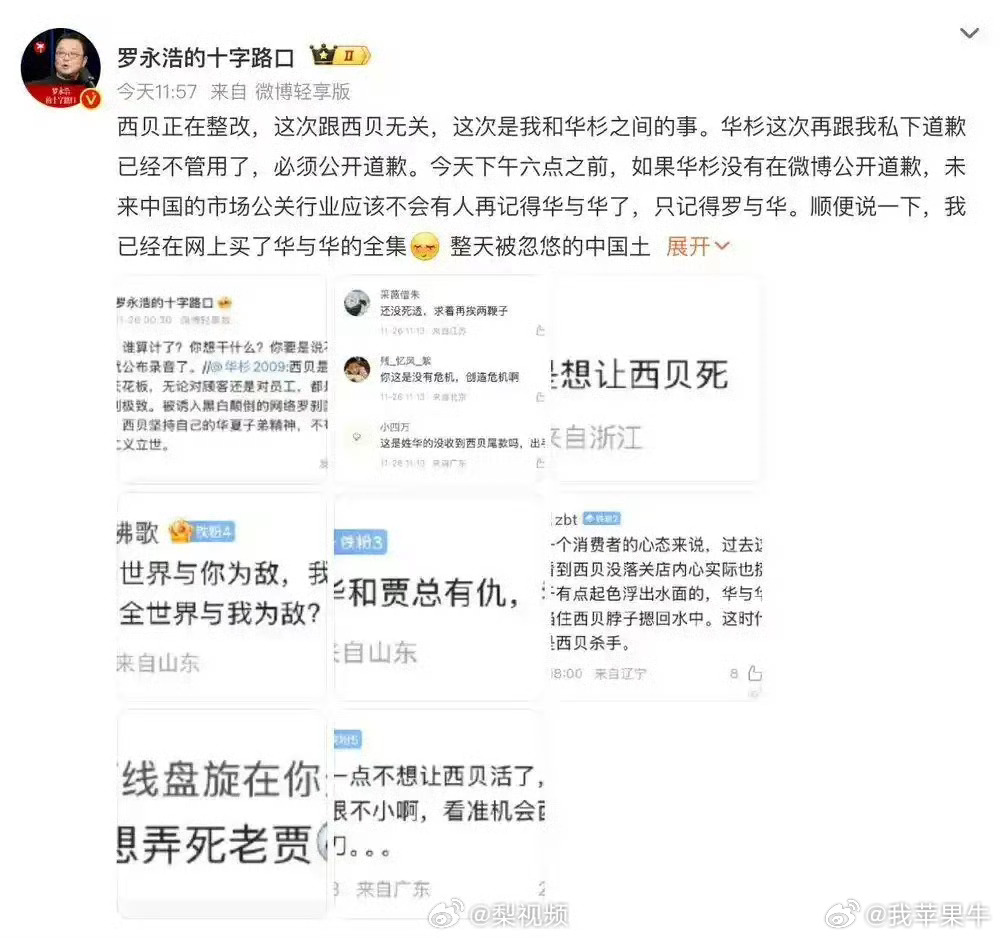 华杉没道歉今天晚上6点是罗给华的时间,华没抓住时间,接下来都是罗的时间了。现在压力给到老罗了上录音!华与华之声!以后只记得罗与华了。罗永浩说其实挺疲劳的华杉6点没道歉