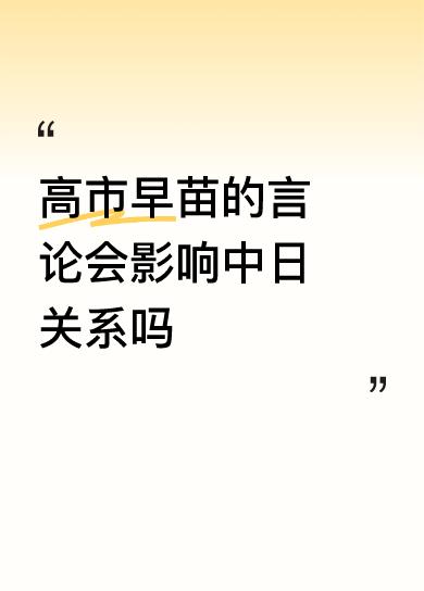 高市早苗的言论肯定会影响中日关系。11月25日外交部记者会上,发言人毛宁提到近期中日交流合作受影响,源头就是高市早苗错误涉台言论。这言论严重伤害中国人民感情,让中日交流氛围变差。 现实中也有体现,中方暂停日本电影在华上映审批,多个城市取消20多场日本音乐人演唱会。台湾问题是中国核心利益中的核心,高市早苗此举是在挑衅中国底线。日本得赶紧纠正错误,别再在涉华问题上挑事,不然中日关系只会越来越糟。