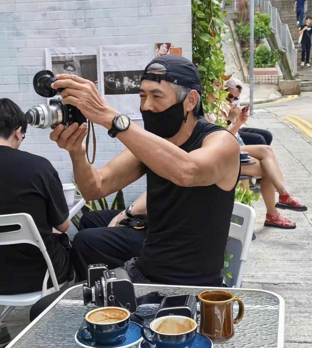 70岁周润发现身香港街头,坐在街边喝咖啡,和朋友们交流摄影技术,看起来好悠闲。 他穿着无袖上衣,露出结实的臂膀,身材看起来很不错,虽然皮肉松弛了,也有了好多白头发,但依然帅气有型,魅力不减当年! 现在发哥很少拍戏了,专注于享受晚年生活,他喜欢上了摄影,经常外出拍照,生活好丰富多彩!