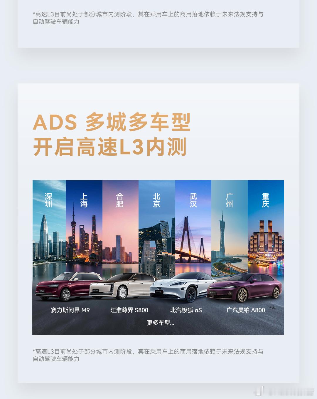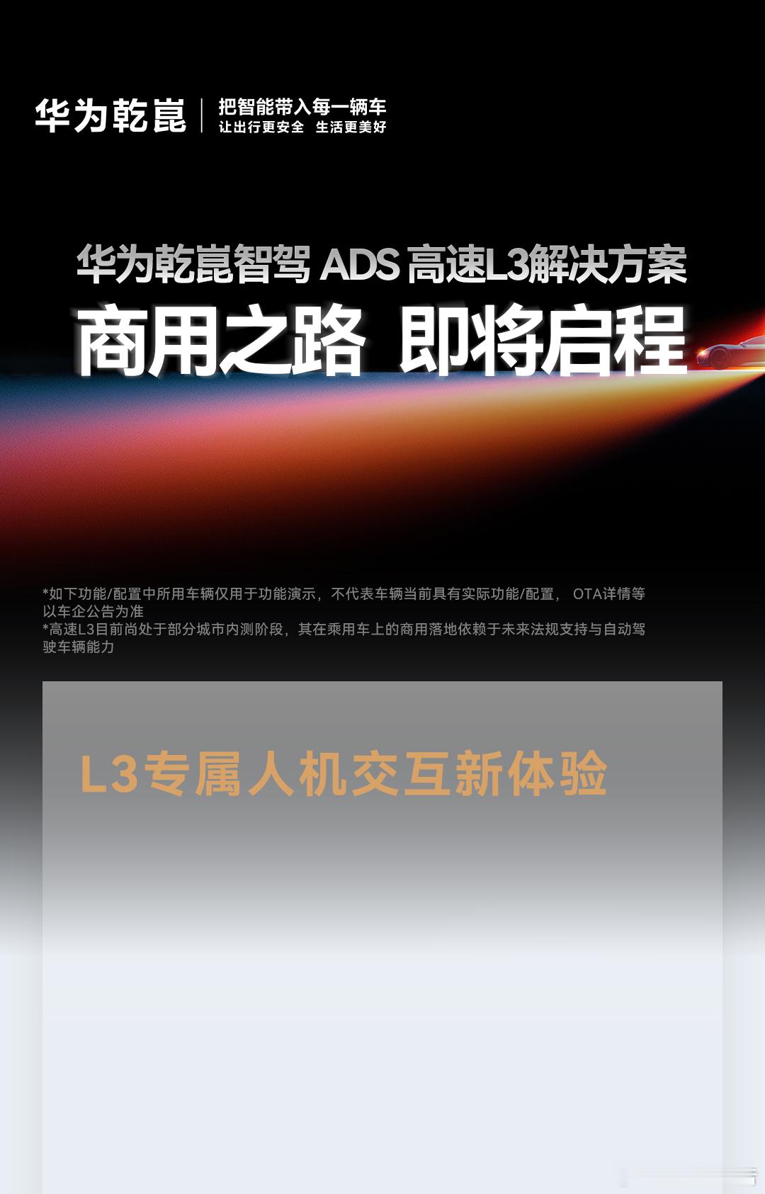 华为乾崑智驾ADS多城多车型开启高速L3内测华为乾崑智驾ADS高速L3解决方案多城多车型已开启内测,同步构建未来全场景服务生态:涵盖停车缴费无感通行、自动充电、便捷洗车养车服务。并将发布乾崑智驾生态开放平台,全流程赋能生态,让美好生活未来可期。华为乾崑华为乾崑生态共赴热爱乾崑智驾汽场全开