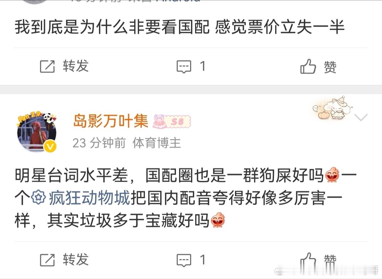 疯狂动物城的国配有这么差么,王安宇都被骂上热搜了
